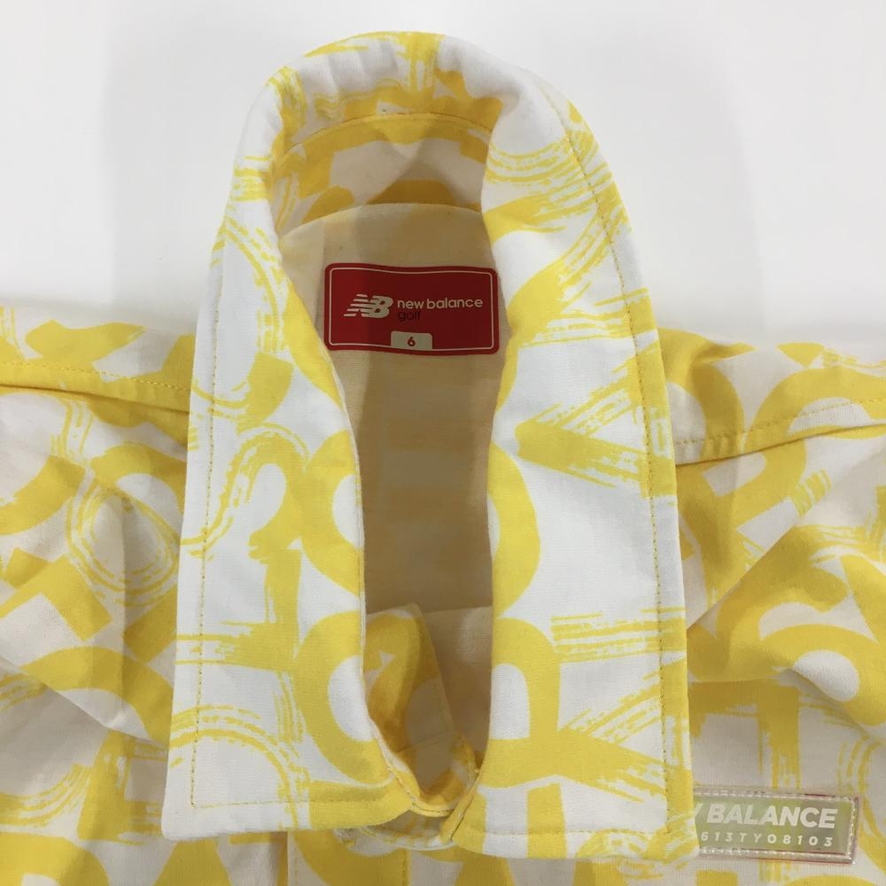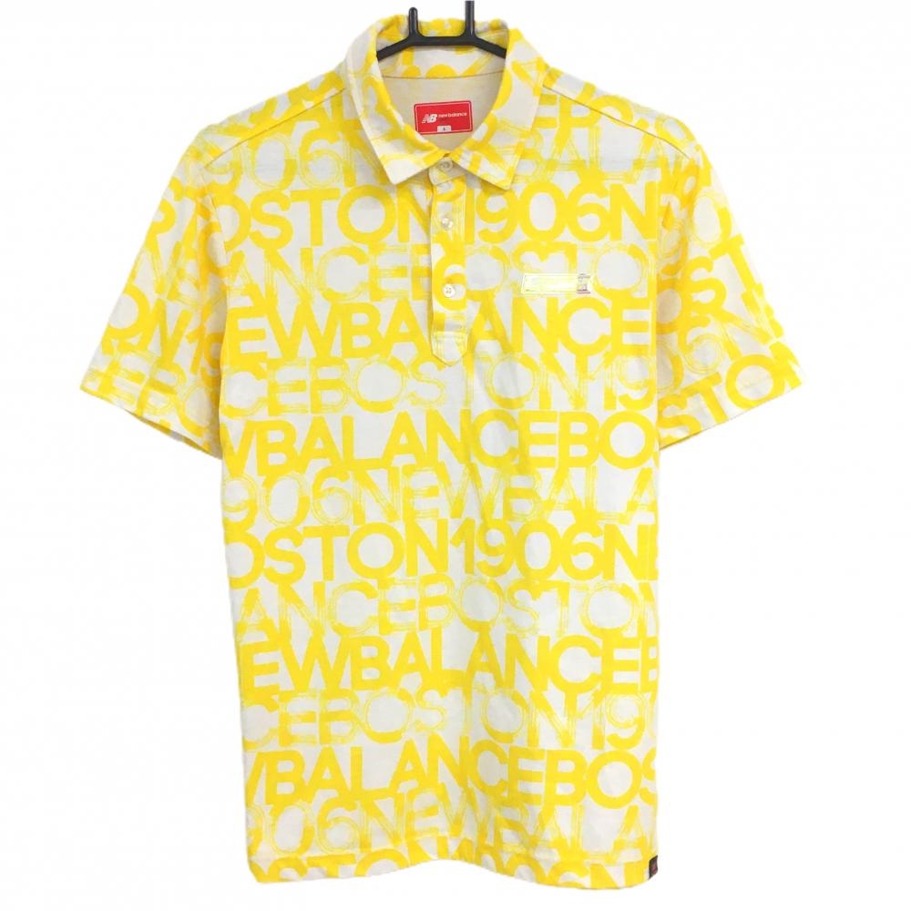 【美品】ニューバランスゴルフ 半袖ポロシャツ 白×イエロー ロゴ総柄 メンズ 6(XL) ゴルフウェア New Balance