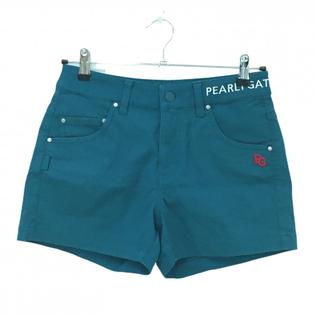 【美品】パーリーゲイツ ショートパンツ グリーン ウエストロゴ白 ストレッチ レディース 00(XS) ゴルフウェア PEARLY GATES