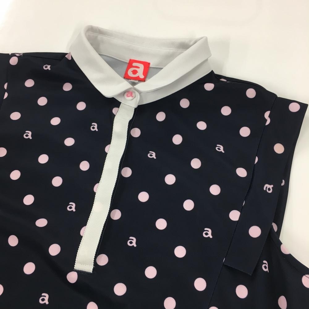 アルチビオ ノースリーブワンピース ネイビー×ライトピンク ドット ロゴ総柄 レディース 40(L) ゴルフウェア archivio