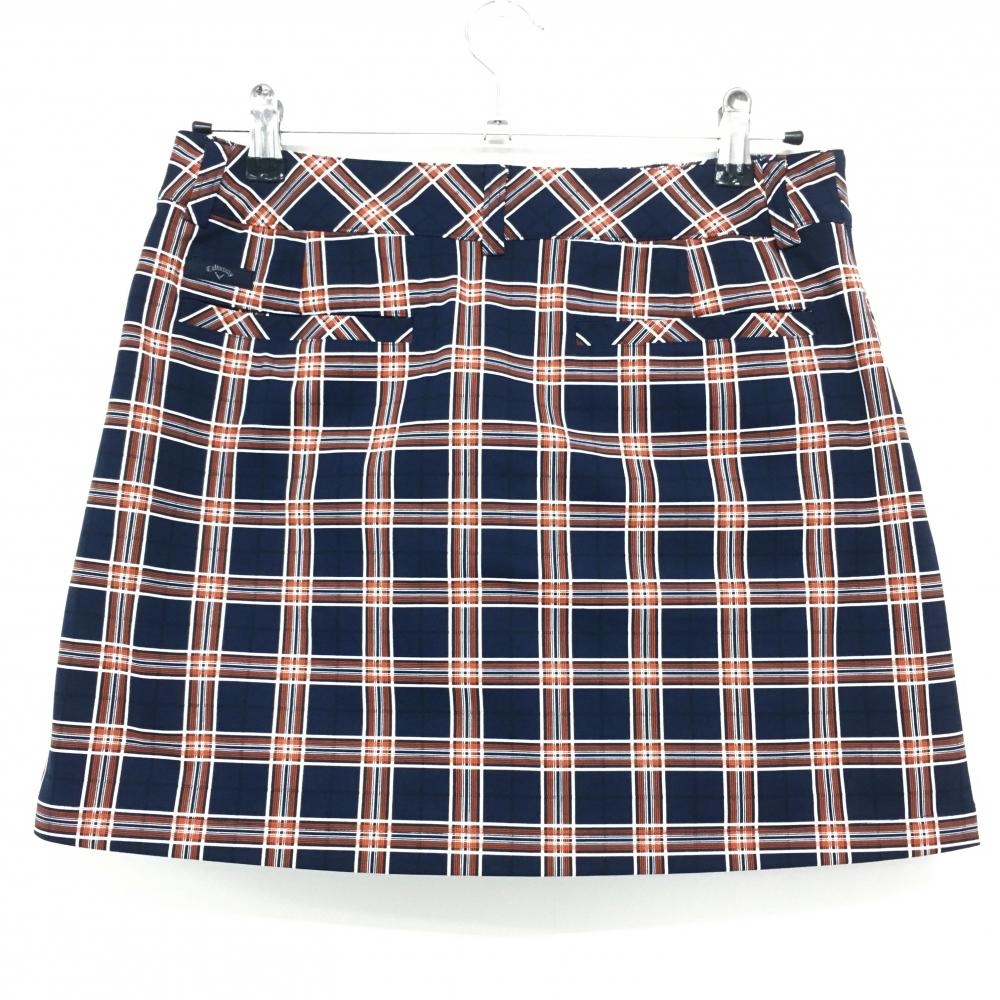 【超美品】キャロウェイ スカート ネイビー×オレンジ チェック ストレッチ 内側インナーパンツ レディース L ゴルフウェア Callaway