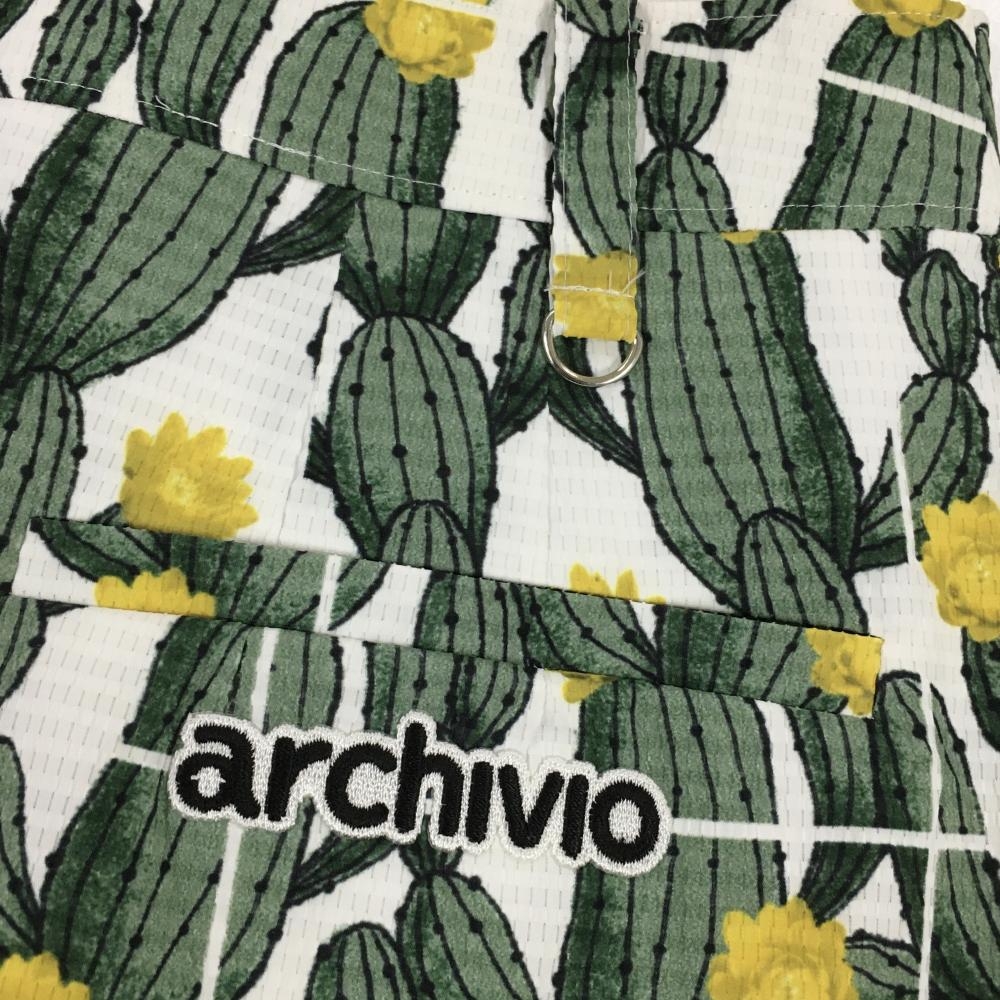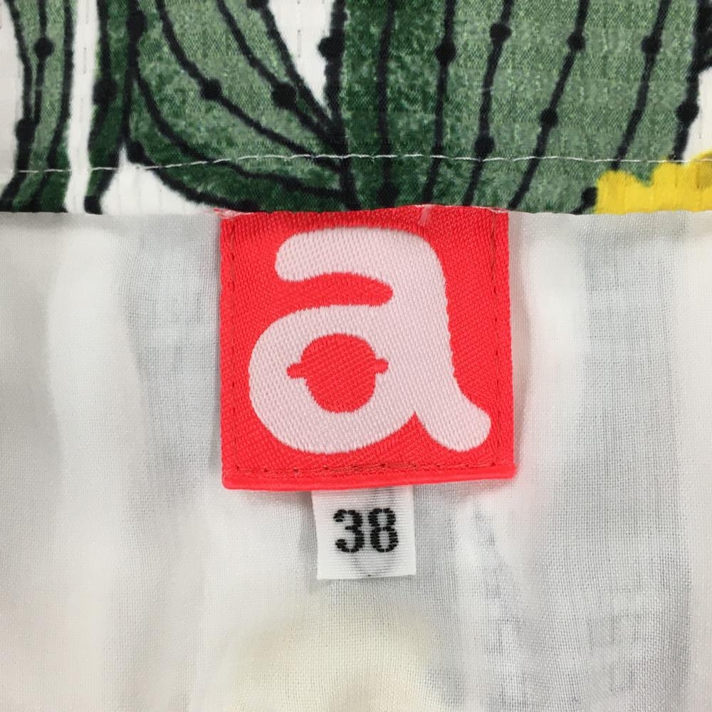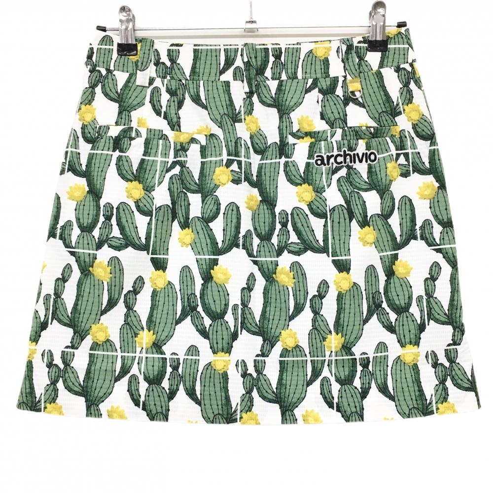 【美品】アルチビオ スカート 白×グリーン サボテン柄 メッシュ調 裏地付 レディース 38(M) ゴルフウェア archivio