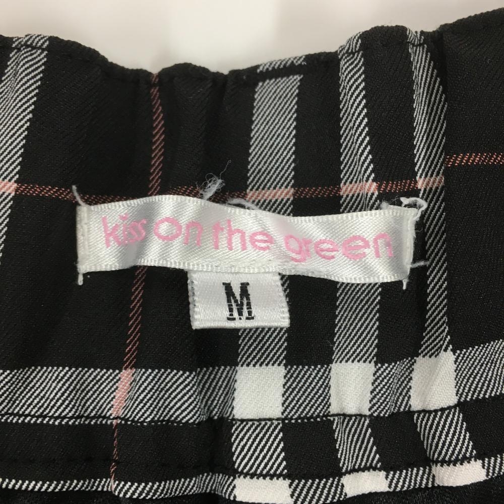 キスオンザグリーン ショートパンツ 黒×白 チェック ストレッチ ロゴ刺しゅう レディース M ゴルフウェア kiss on the green