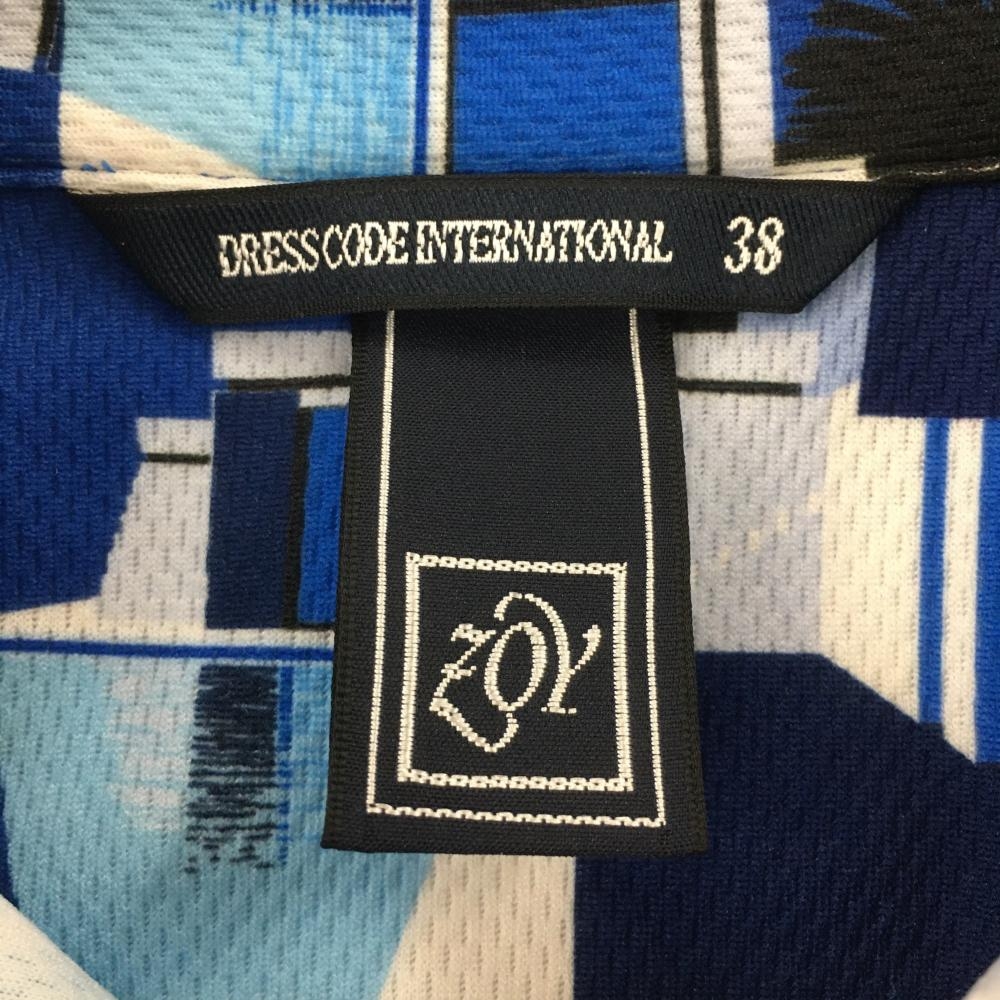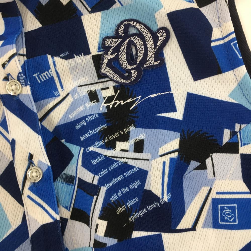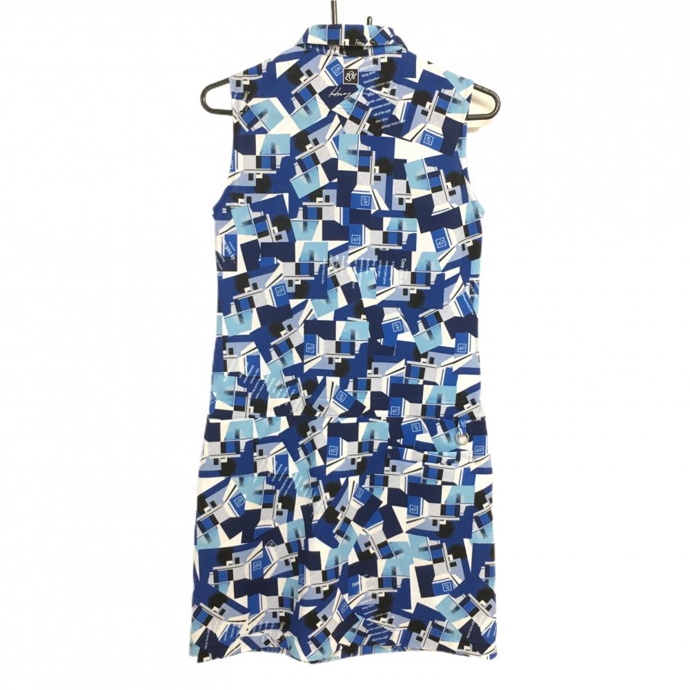 ゾーイ ノースリーブポロワンピース 白×ブルー 織生地 ロゴワッペン レディース 38(M) ゴルフウェア ZOY