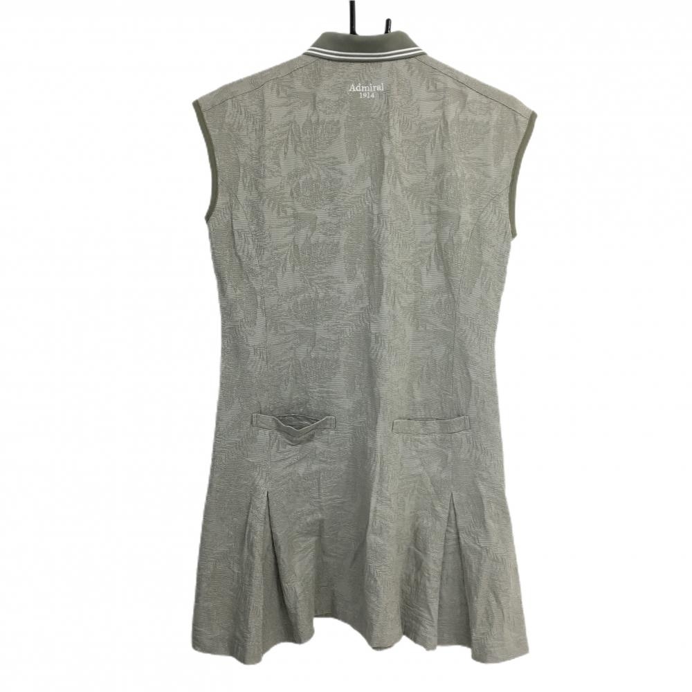 【美品】アドミラル ノースリーブポロワンピース グレー系 織生地地模様 襟2ライン レディース L ゴルフウェア Admiral