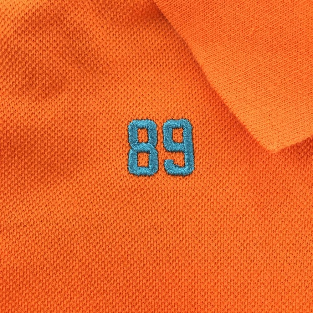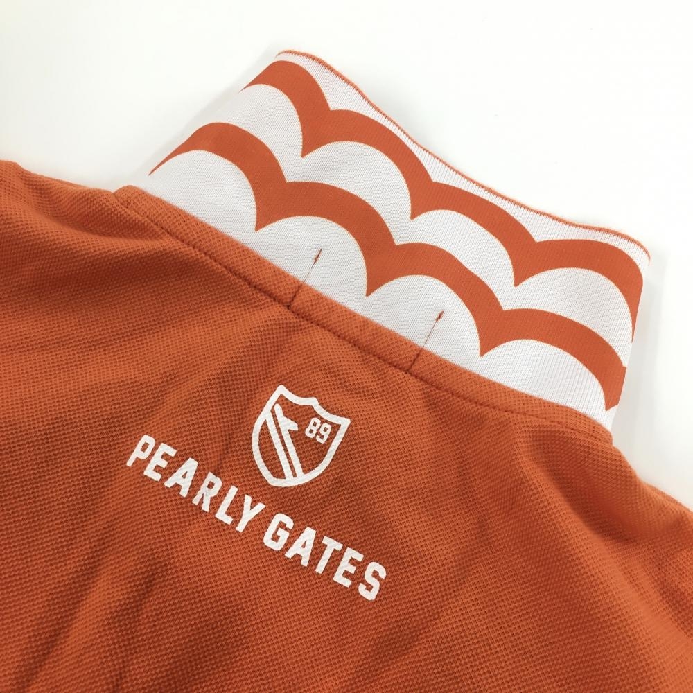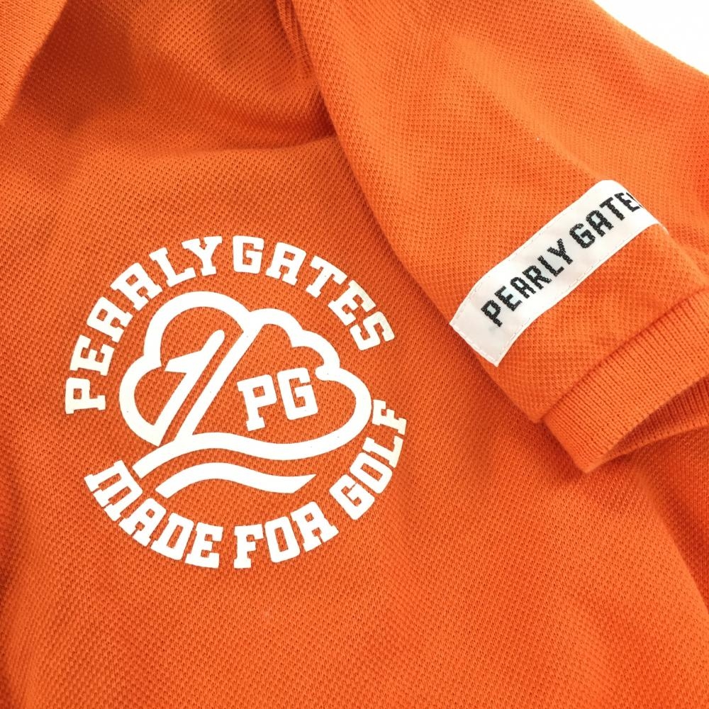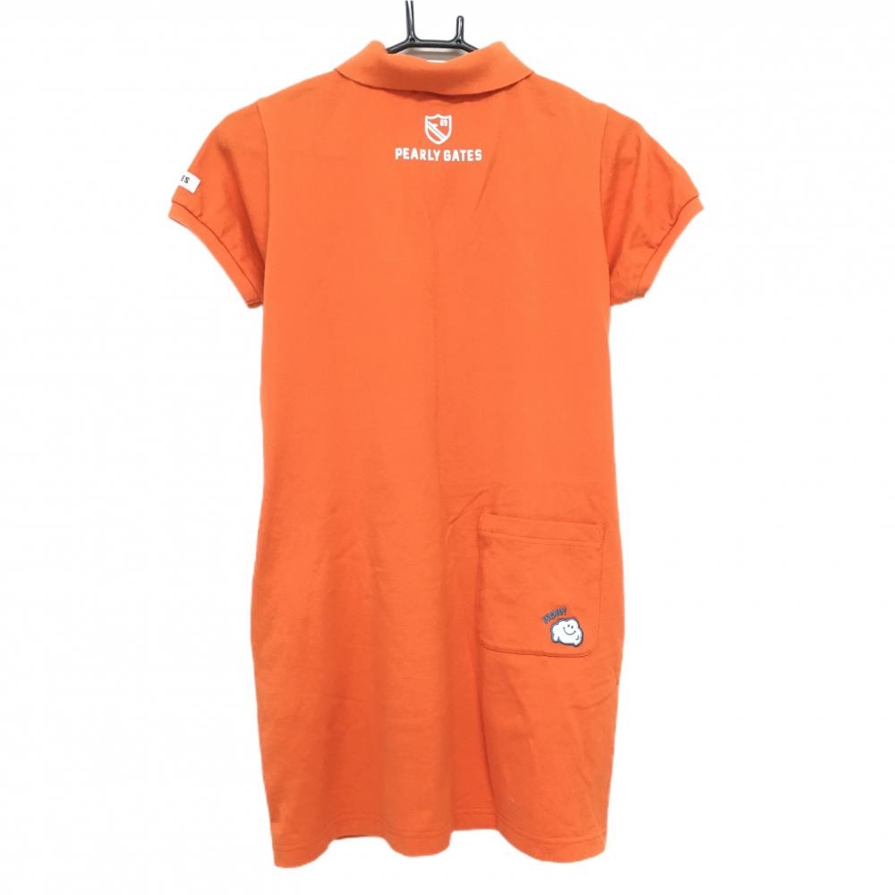 【美品】パーリーゲイツ 半袖ポロワンピース オレンジ×白 雲ワッペン 襟裏総柄 レディース 0(S) ゴルフウェア PEARLY GATES