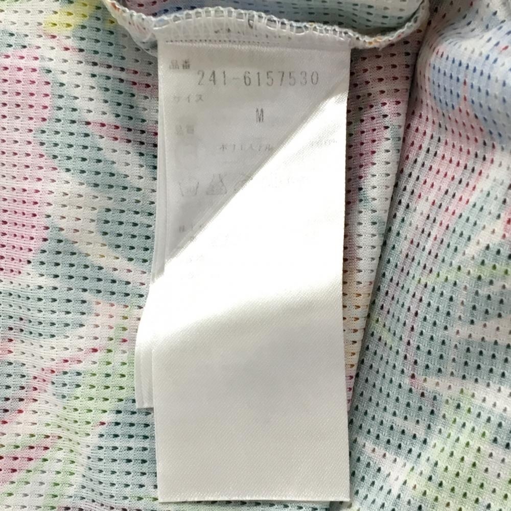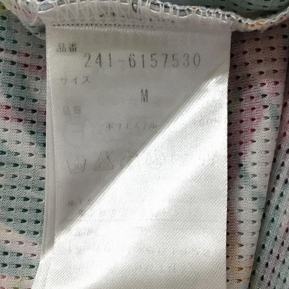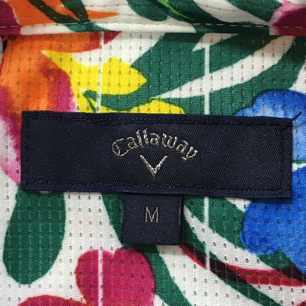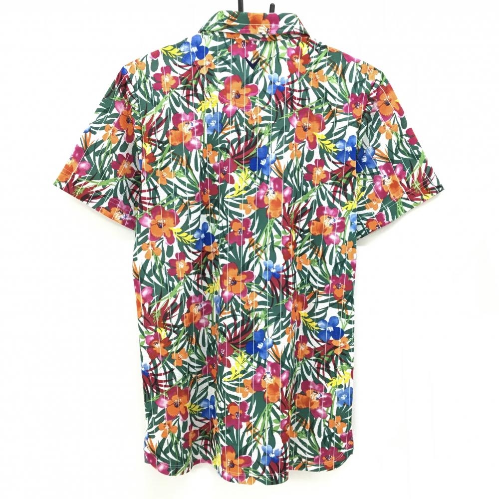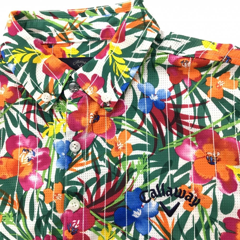 【超美品】キャロウェイ 半袖ポロシャツ 白×グリーン ボタニカル花柄 メッシュ調 ボタンダウン メンズ M ゴルフウェア Callaway