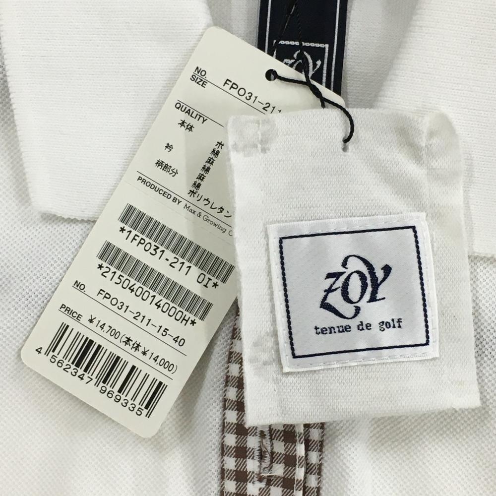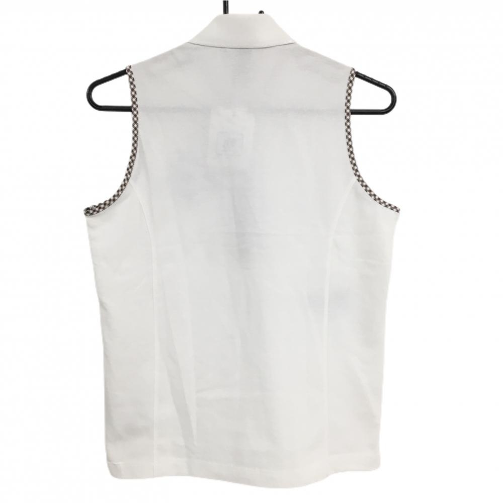 ゾーイ ノースリーブポロシャツ 白×ブラウン 一部チェック 紙タグ付 レディース 40(L) ゴルフウェア ZOY