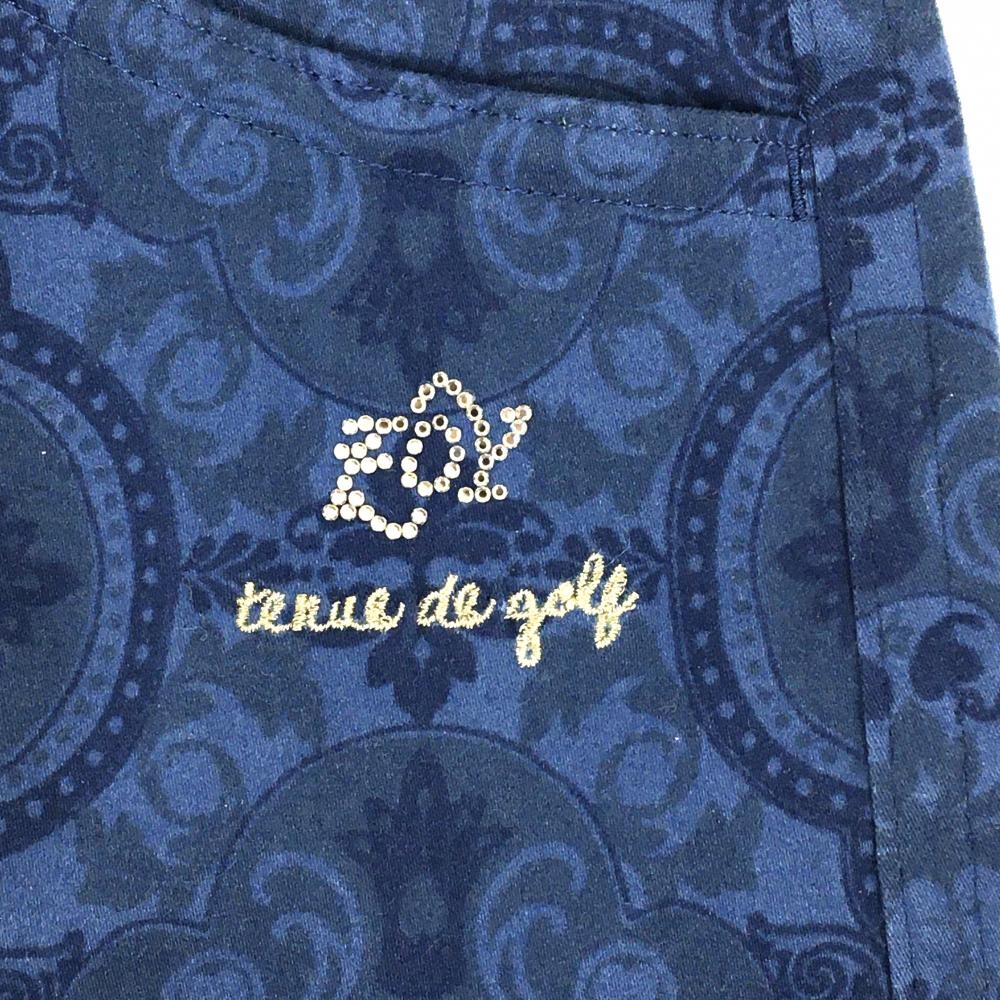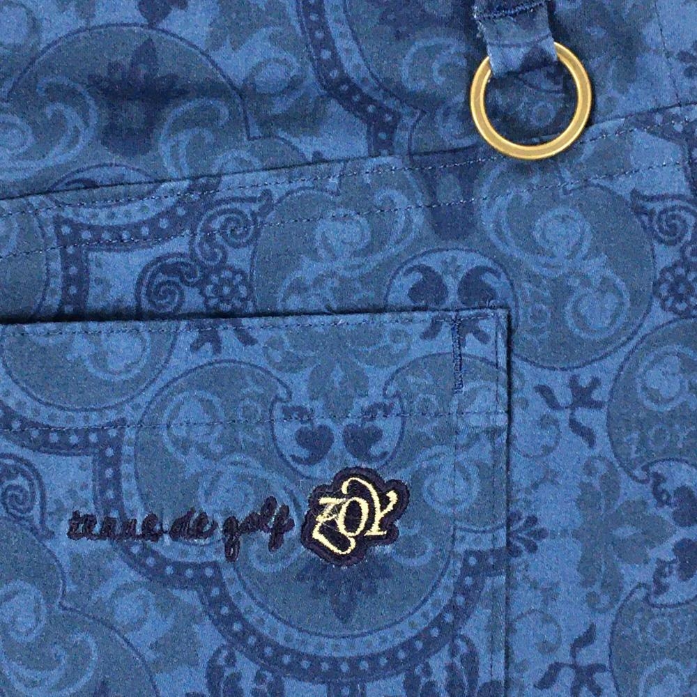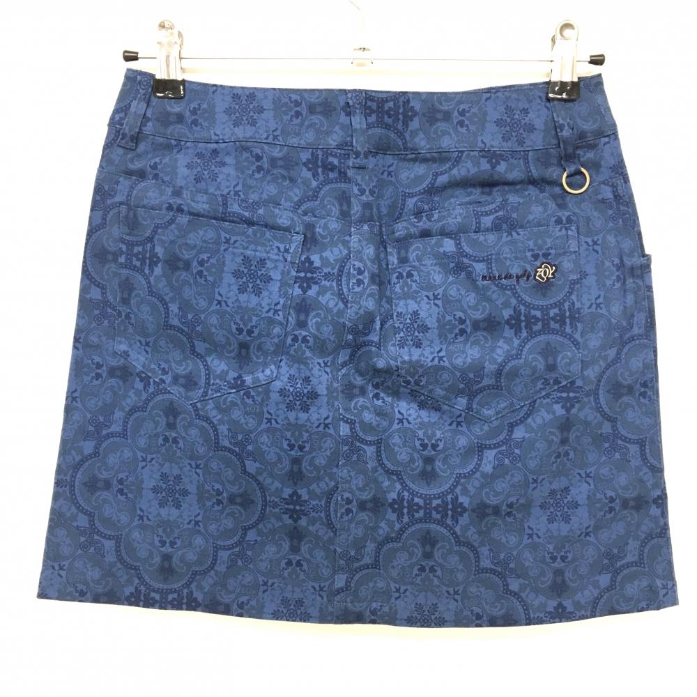 【超美品】ゾーイ スカート ネイビー×ダークネイビー 総柄 ラインストーンロゴ レディース 36(S) ゴルフウェア ZOY