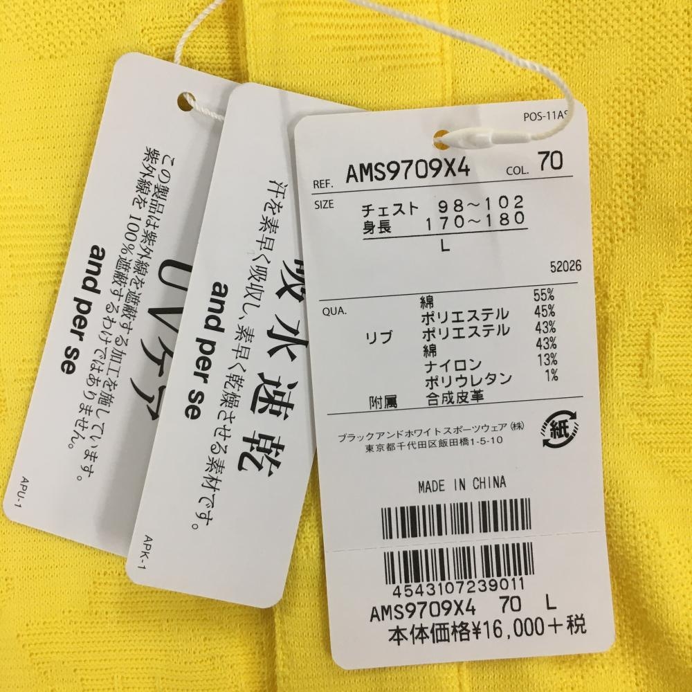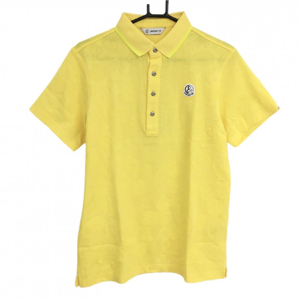 【新品】アンパスィ 半袖ポロシャツ イエロー 総柄織生地 吸水速乾 メンズ L ゴルフウェア and per se