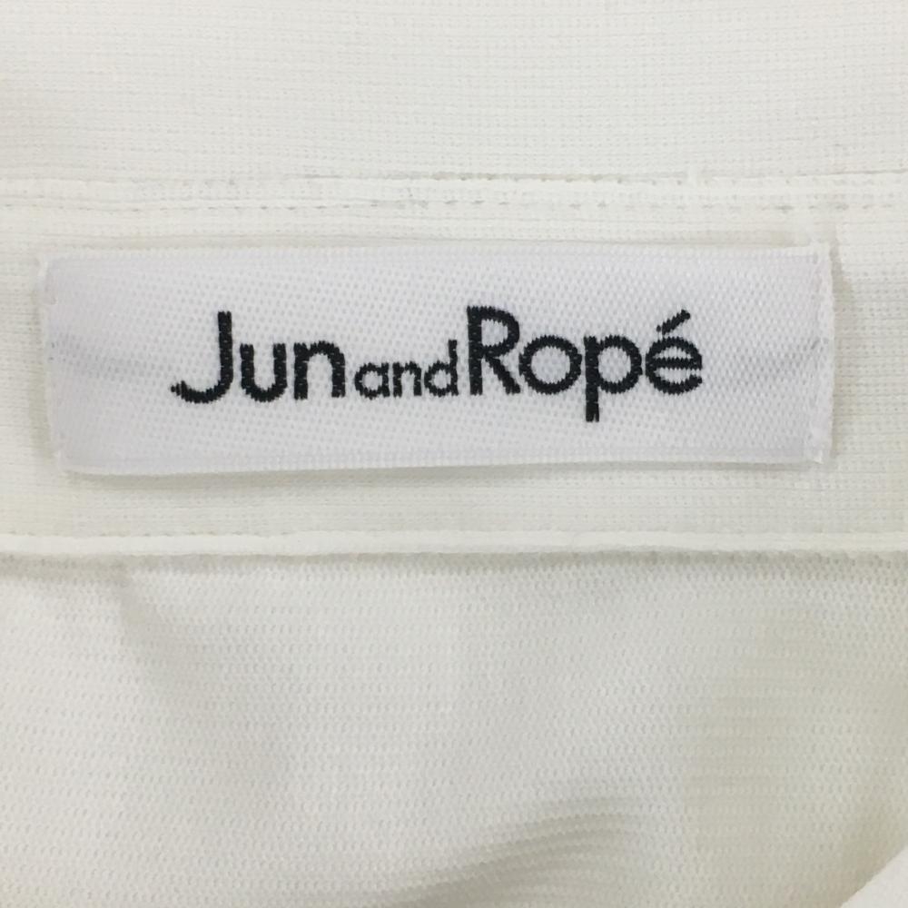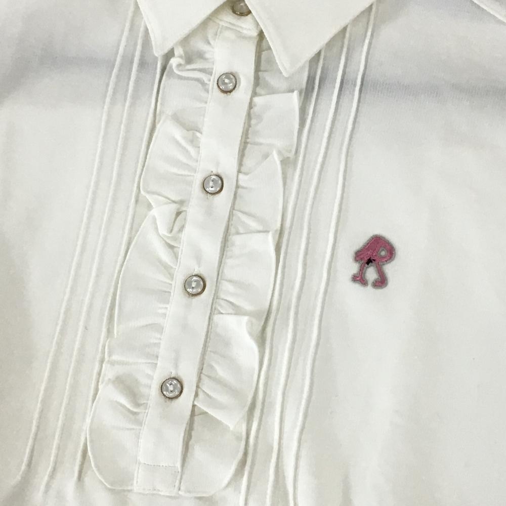 【超美品】ジュンアンドロペ 長袖ポロシャツ 白 前立てフリル フラミンゴワッペン レディース M ゴルフウェア JUN&ROPE