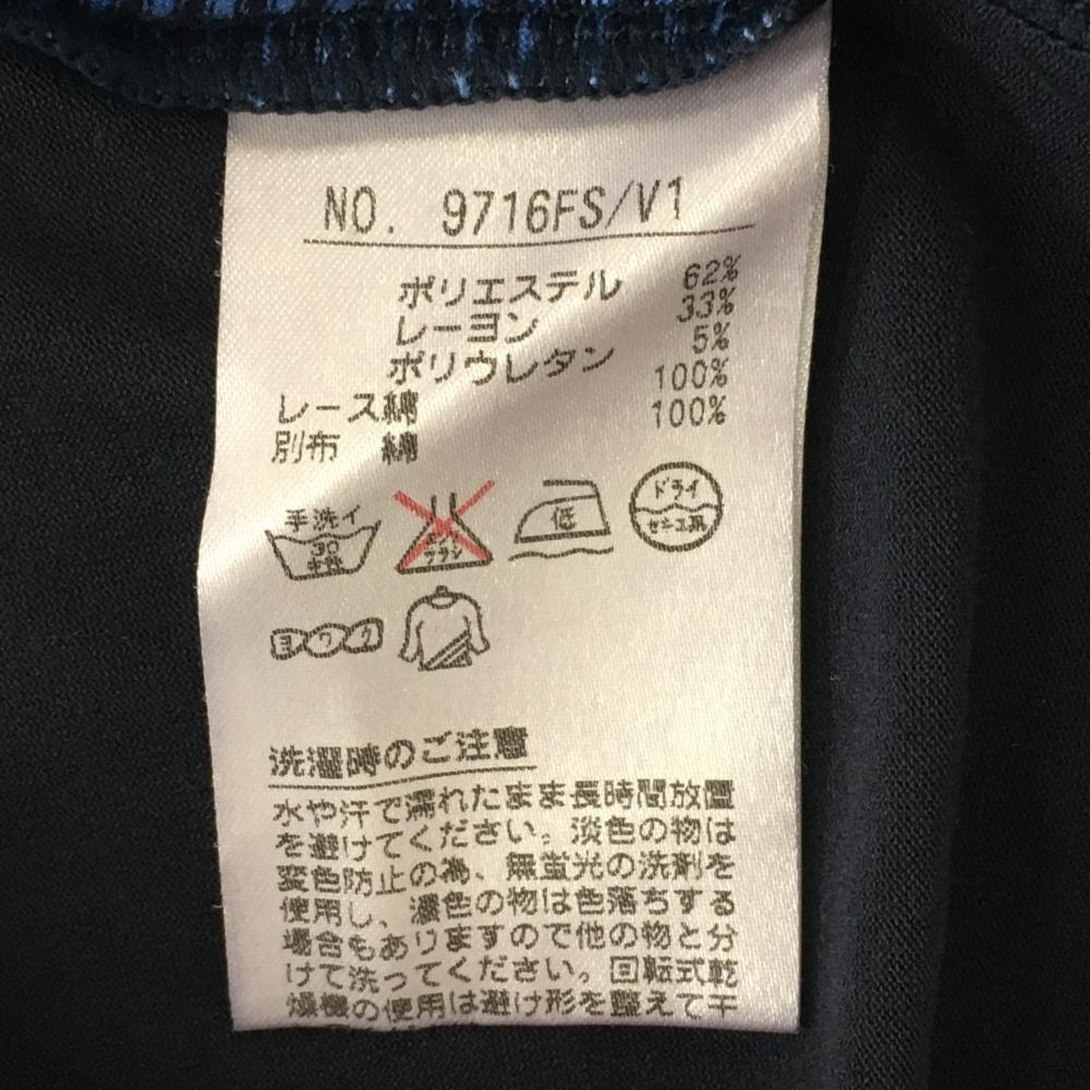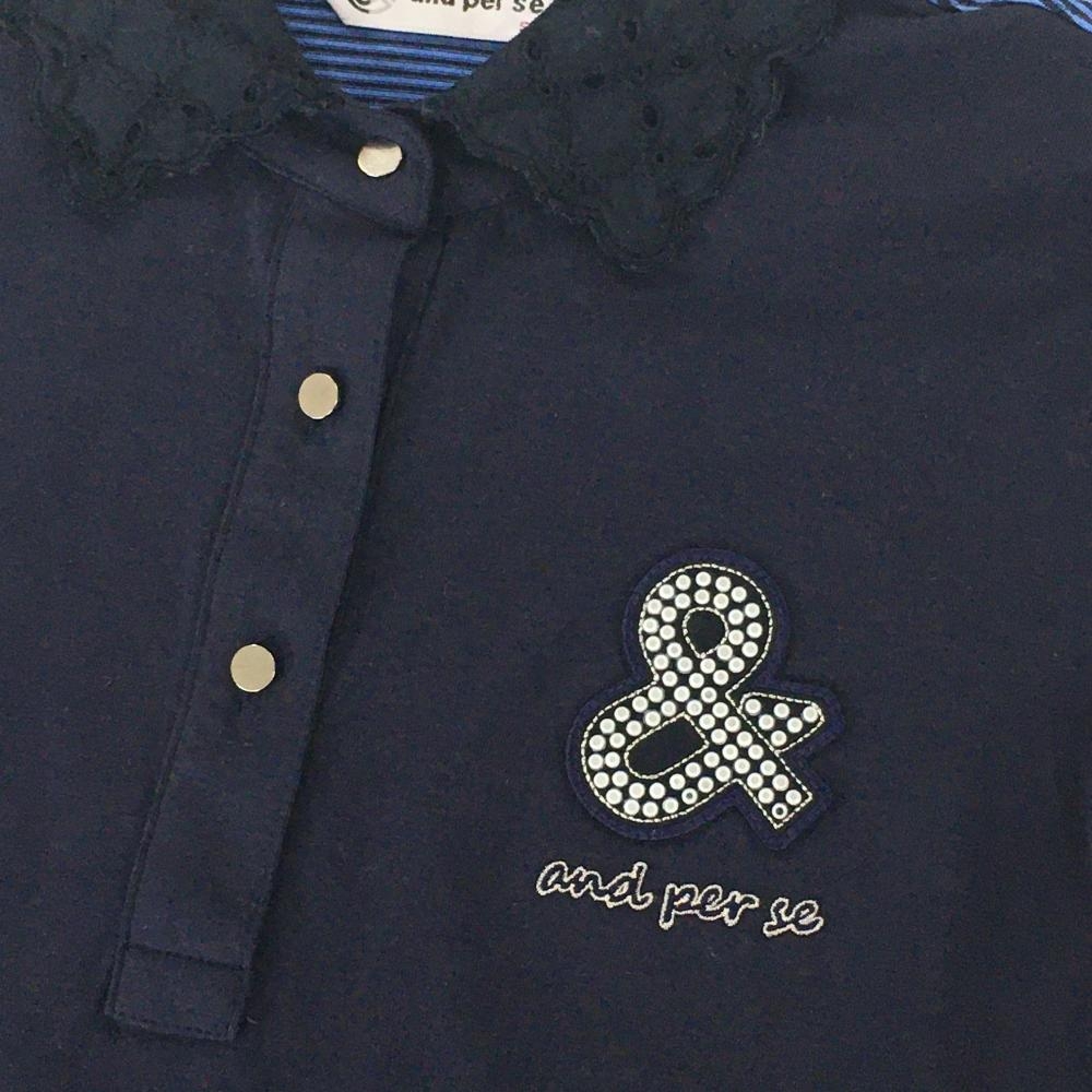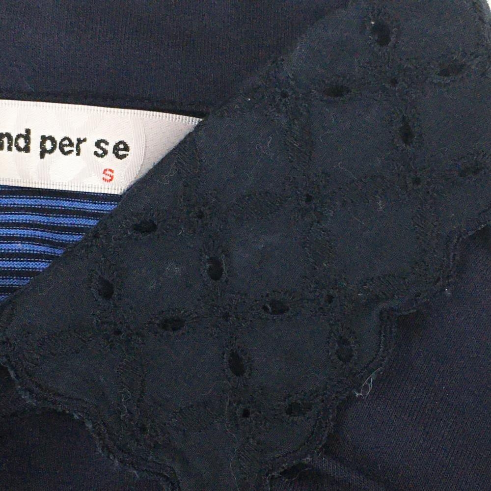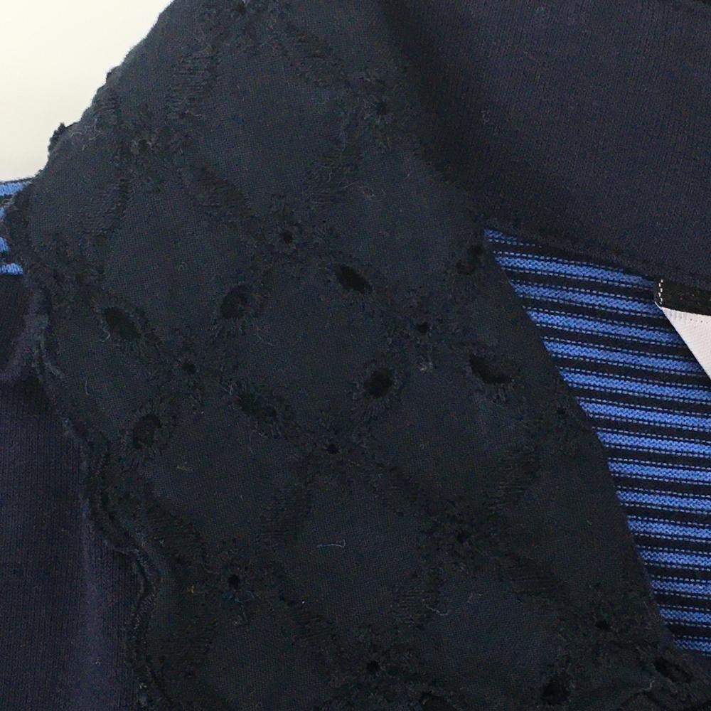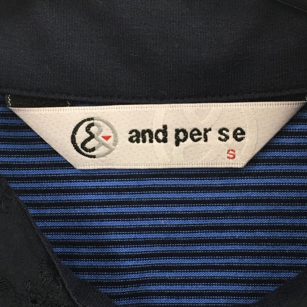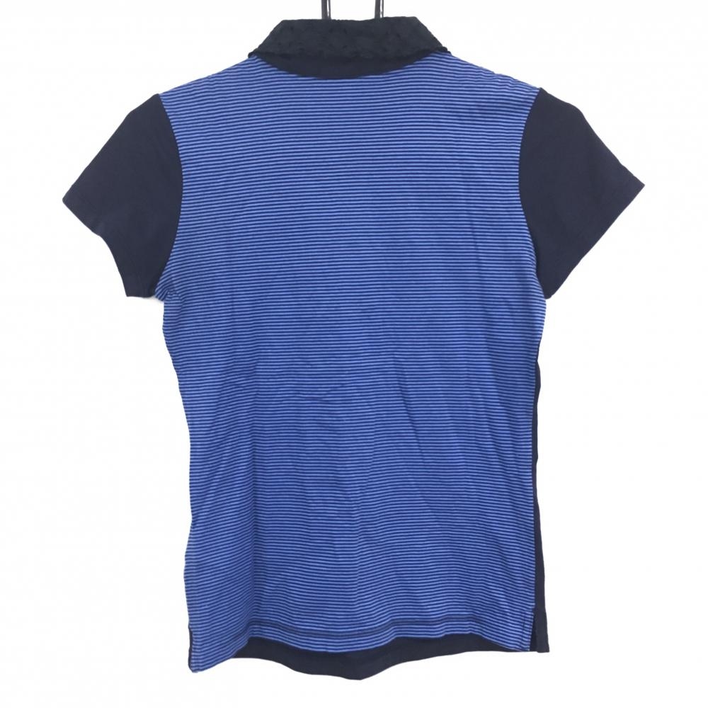 【美品】アンパスィ 半袖ポロシャツ ダークネイビー×ブルー 背面細ボーダー 襟レース調 レディース S ゴルフウェア and per se