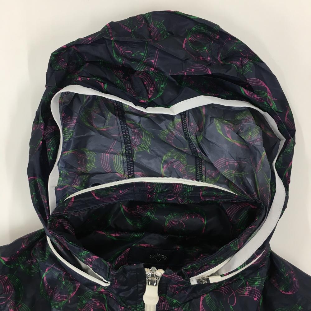キャロウェイ 2WAYジャケット ネイビー×ピンク 音符柄 裏メッシュ ジャケット フード収納 袖着脱可 レディース L ゴルフウェア Callaway