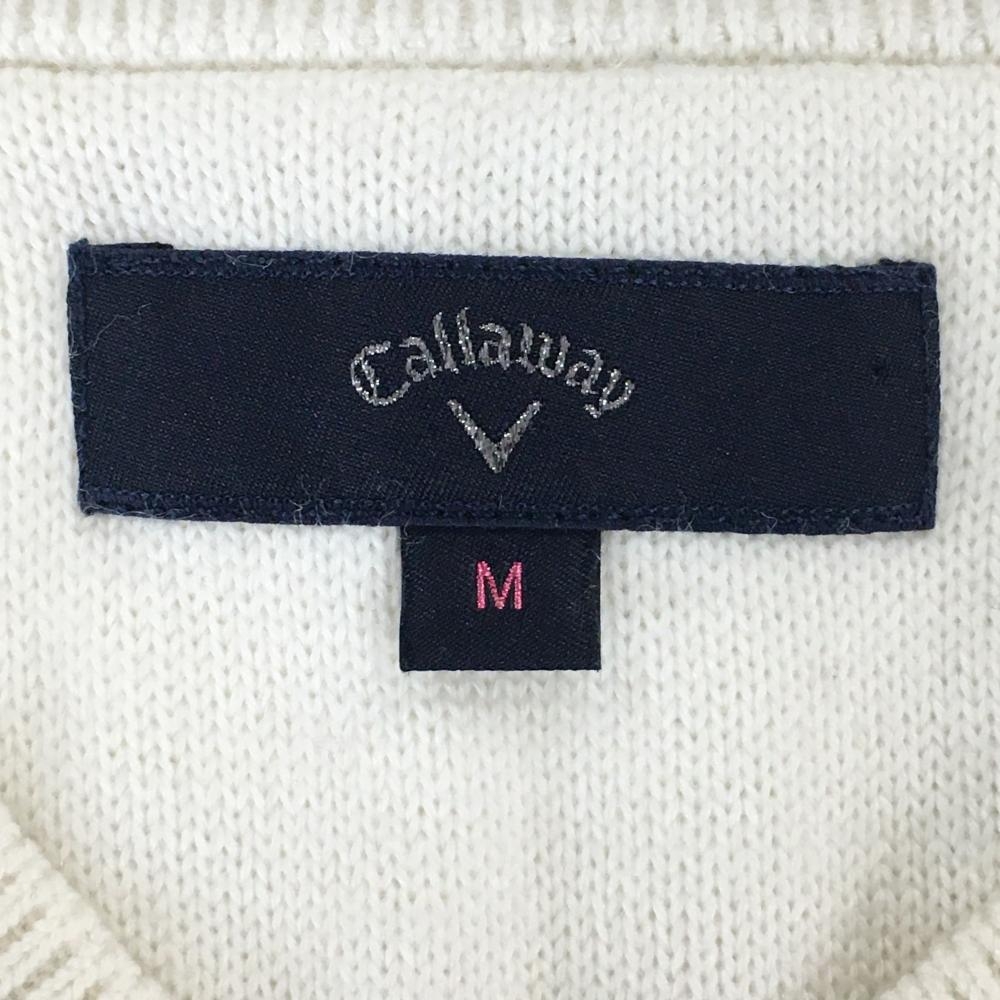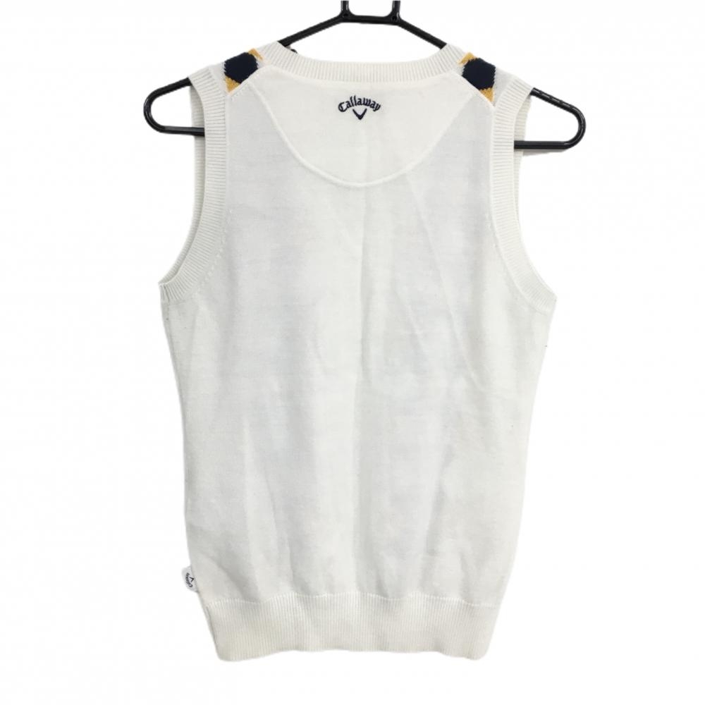 【美品】キャロウェイ ニットベスト 白×オレンジ×ネイビー 前面ダイヤ柄 ウール混 Vネック レディース M ゴルフウェア Callaway