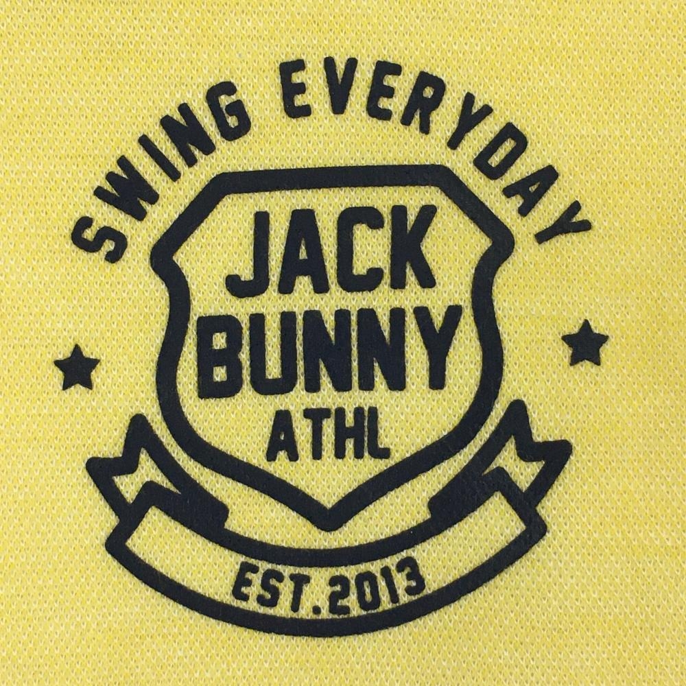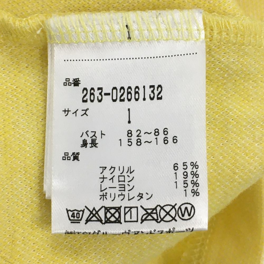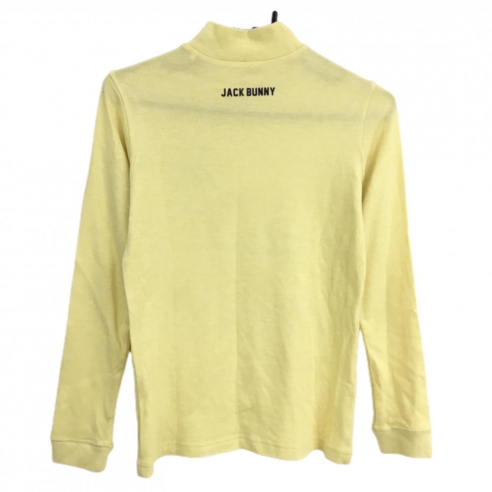 【超美品】ジャックバニー 長袖ハイネックシャツ イエロー×ネイビー アクリル混 ロゴプリント レディース 1(M) ゴルフウェア Jack Bunny