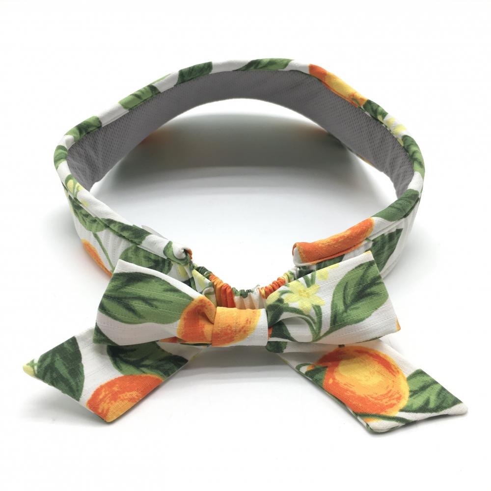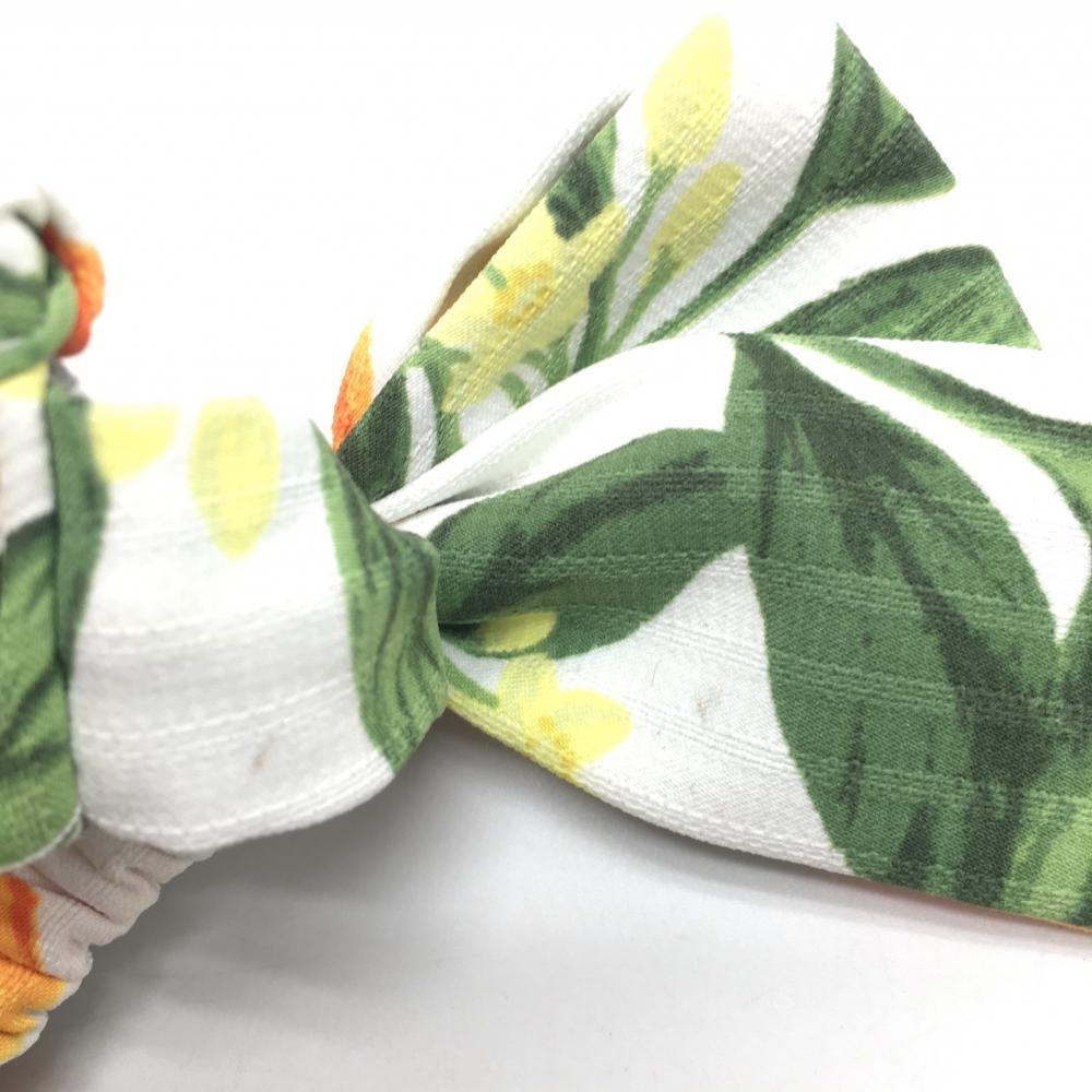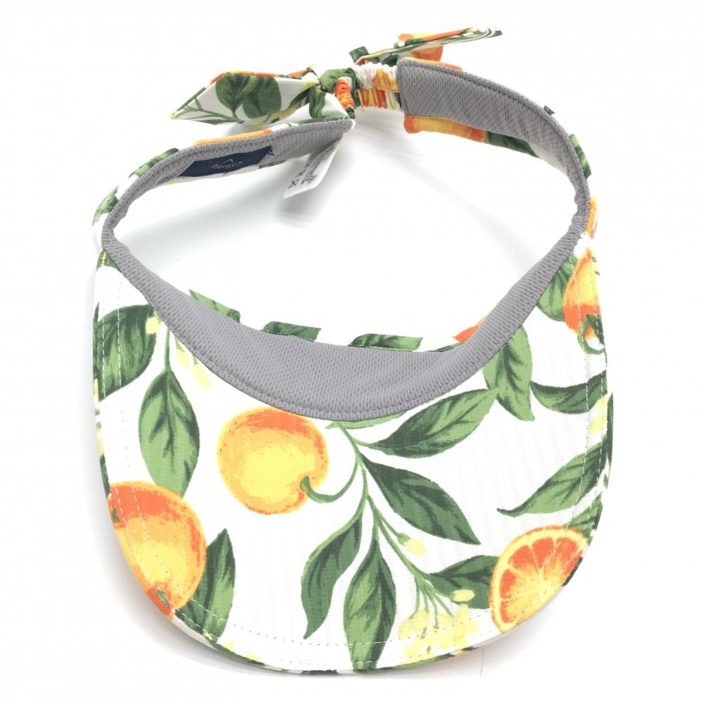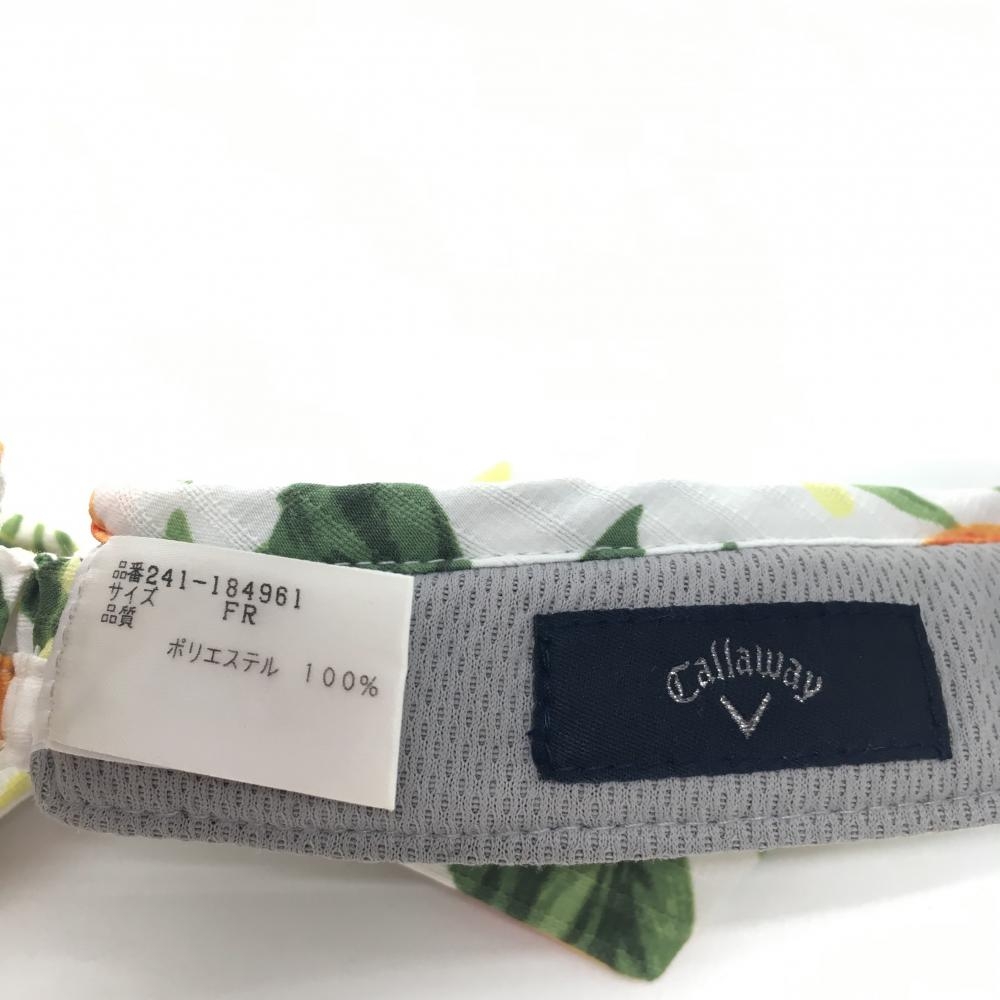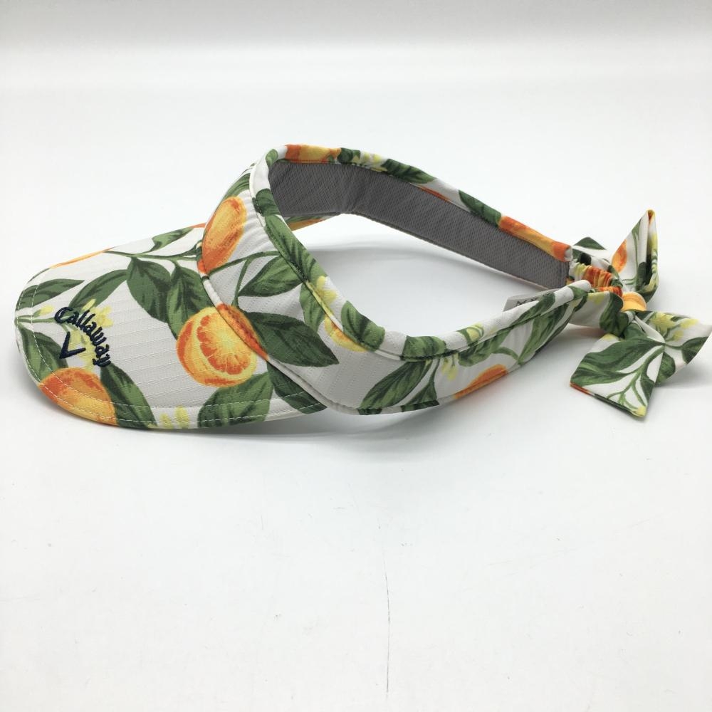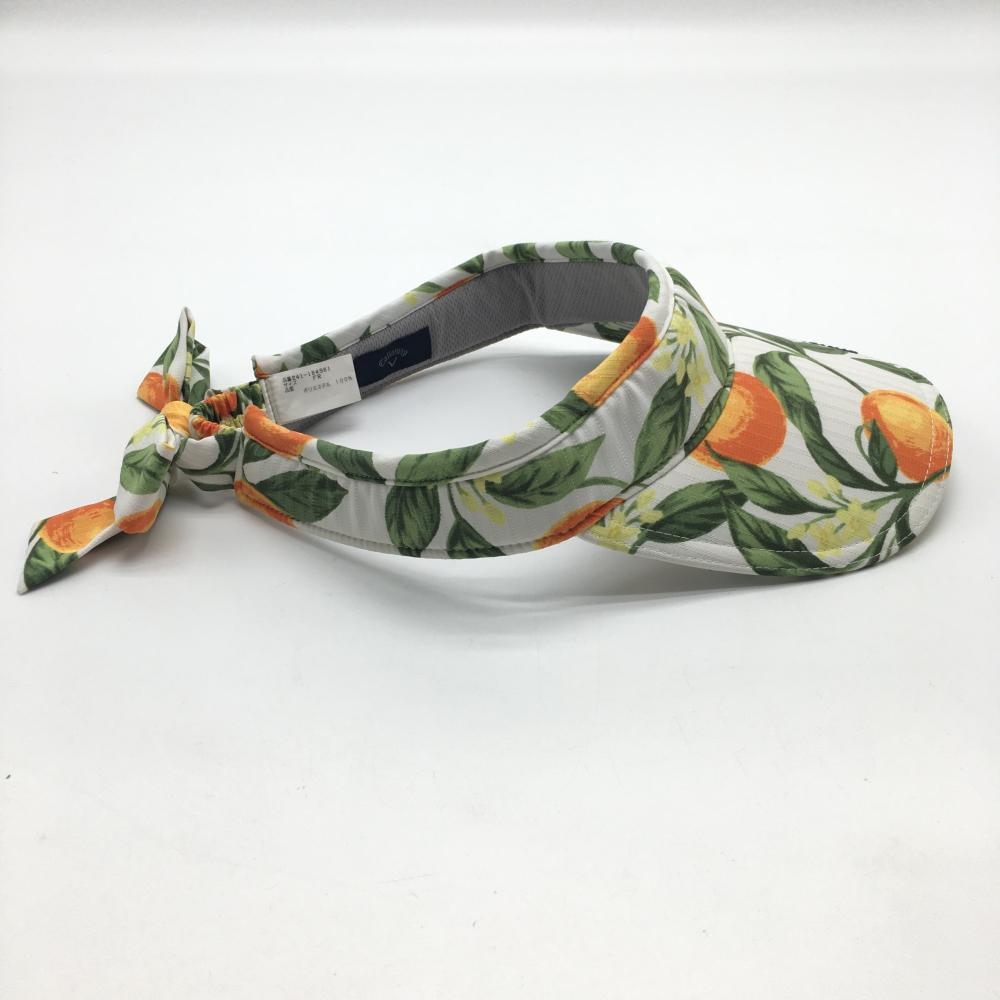 【超美品】キャロウェイ サンバイザー 白×オレンジ オレンジ柄 ロゴ刺しゅう 後リボン レディース FR ゴルフウェア Callaway