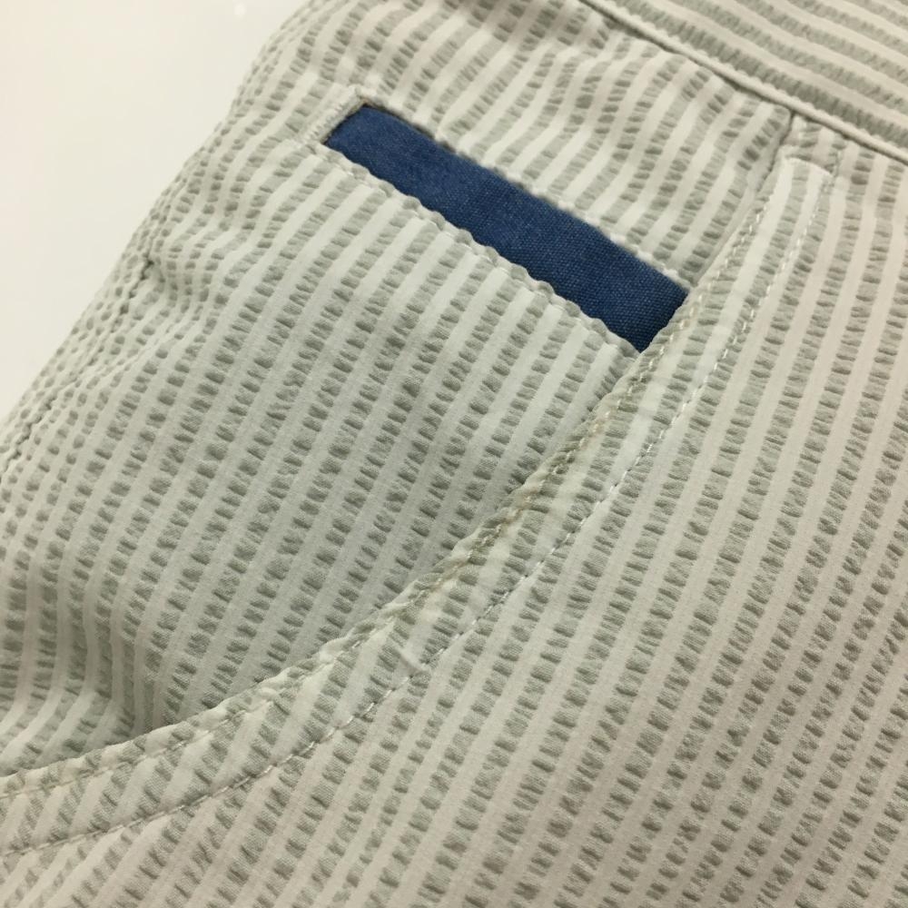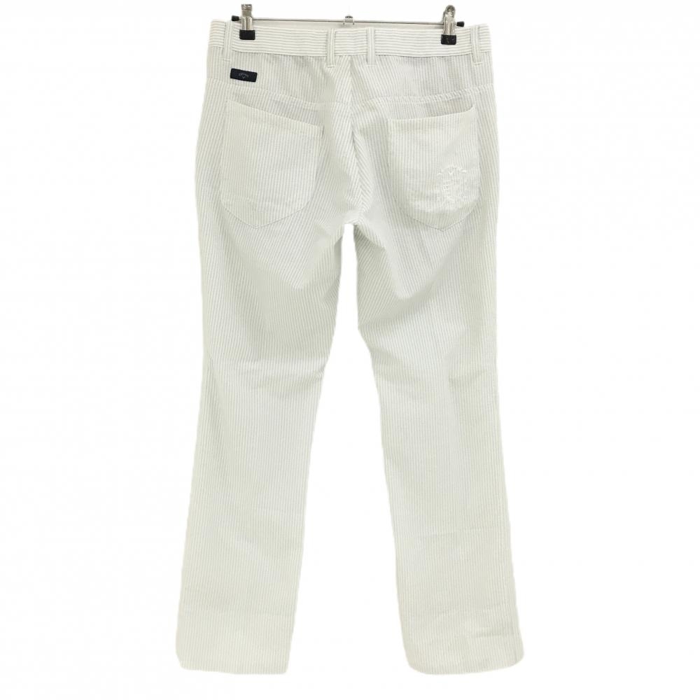 【美品】キャロウェイ パンツ 白×ライトグレー ストライプ サッカー生地 メンズ LL ゴルフウェア Callaway