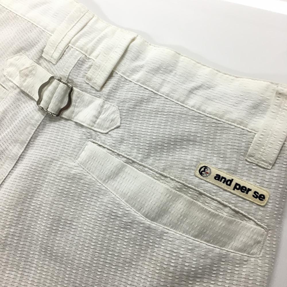 アンパスィ ハーフパンツ 白 サッカー生地 裏地メッシュ メンズ 79(M) ゴルフウェア and per se
