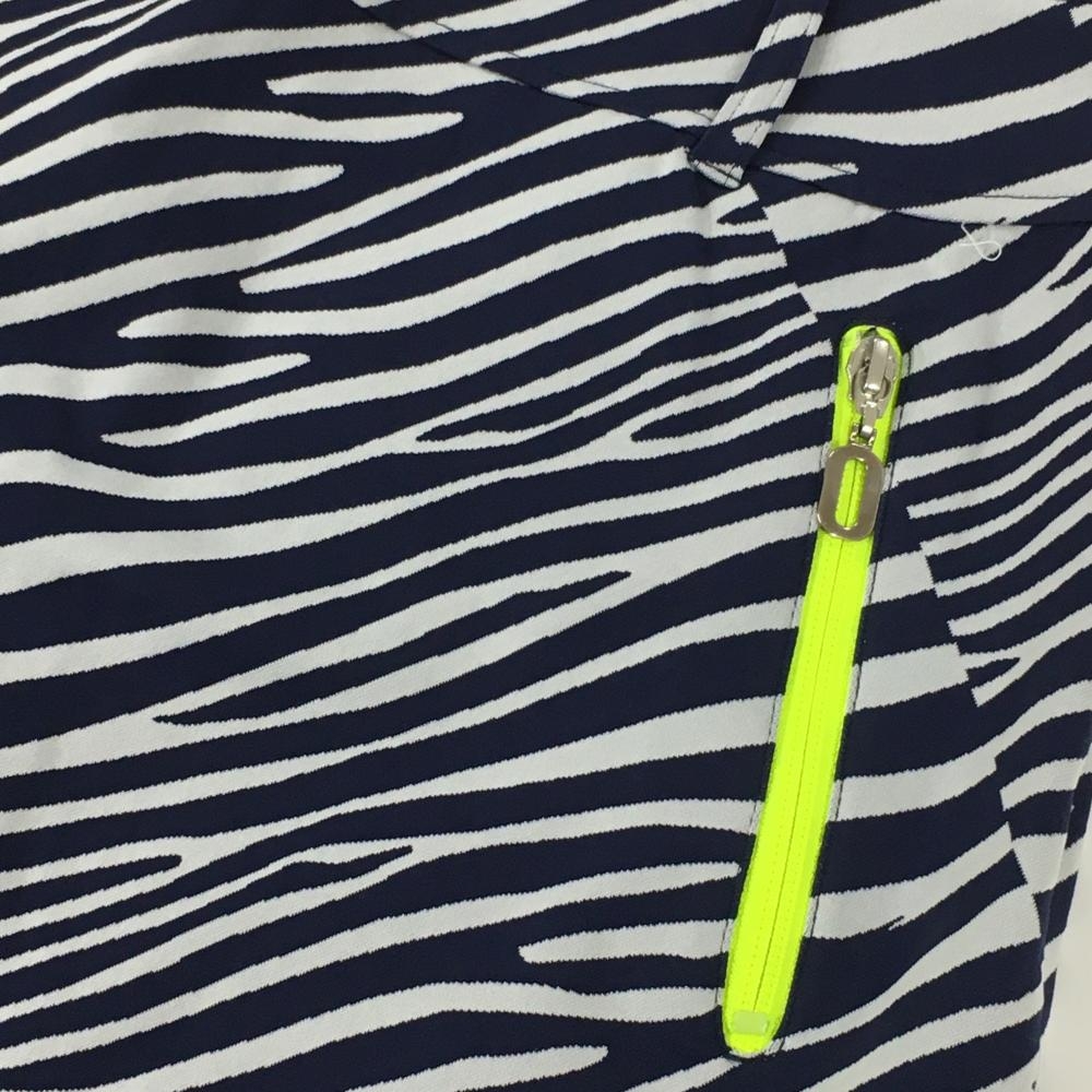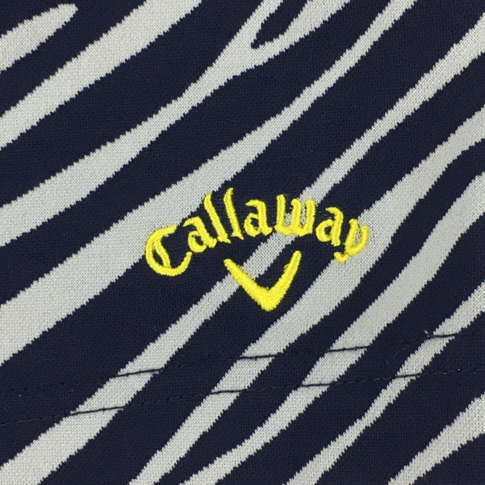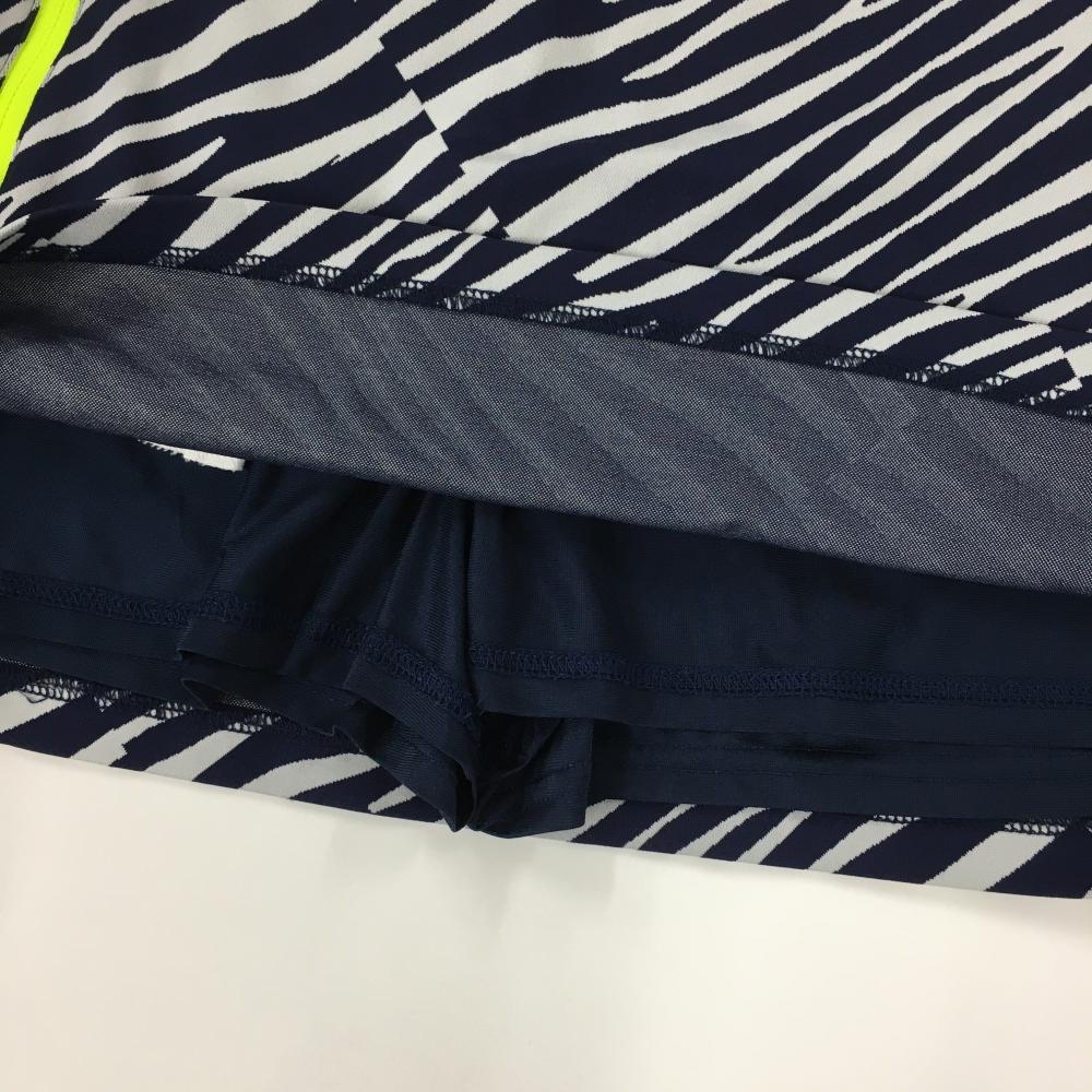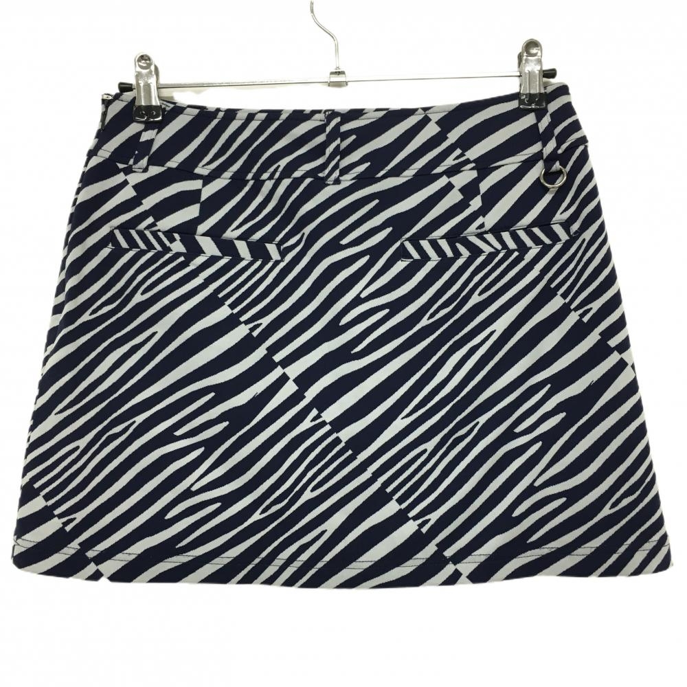 【超美品】キャロウェイ スカート ネイビー×白 ゼブラ柄 ジップポケット 内側インナーパンツ レディース L ゴルフウェア Callaway