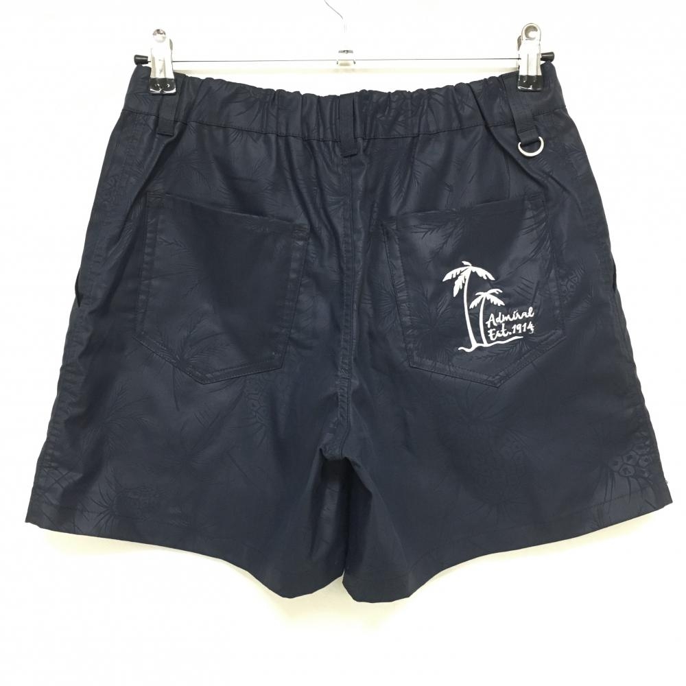 【超美品】アドミラル ショートパンツ ネイビー パイナップル柄地模様 後ろウエストゴム レディース M ゴルフウェア Admiral
