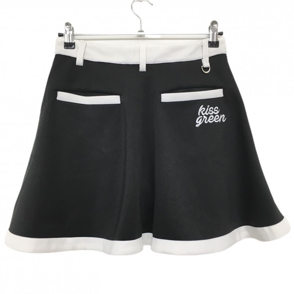 【超美品】キスオンザグリーン スカート 黒×アイボリー フロントボタン レディース 2(M) ゴルフウェア kiss on the green