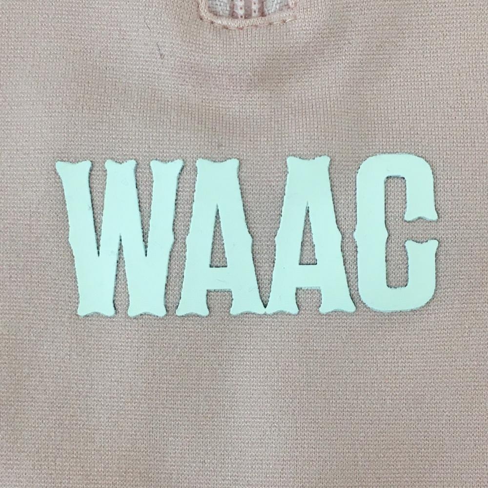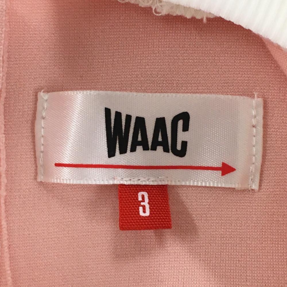 【超美品】ワック 長袖ハイネックシャツ ピンク×白 ビッグロゴ バックジップ レディース 3(L) ゴルフウェア WAAC