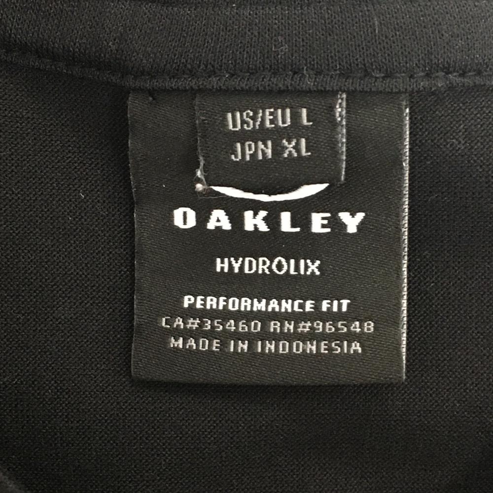 【超美品】オークリー 半袖Tシャツ 黒×グレー フロントロゴ総柄 メンズ XL ゴルフウェア Oakley