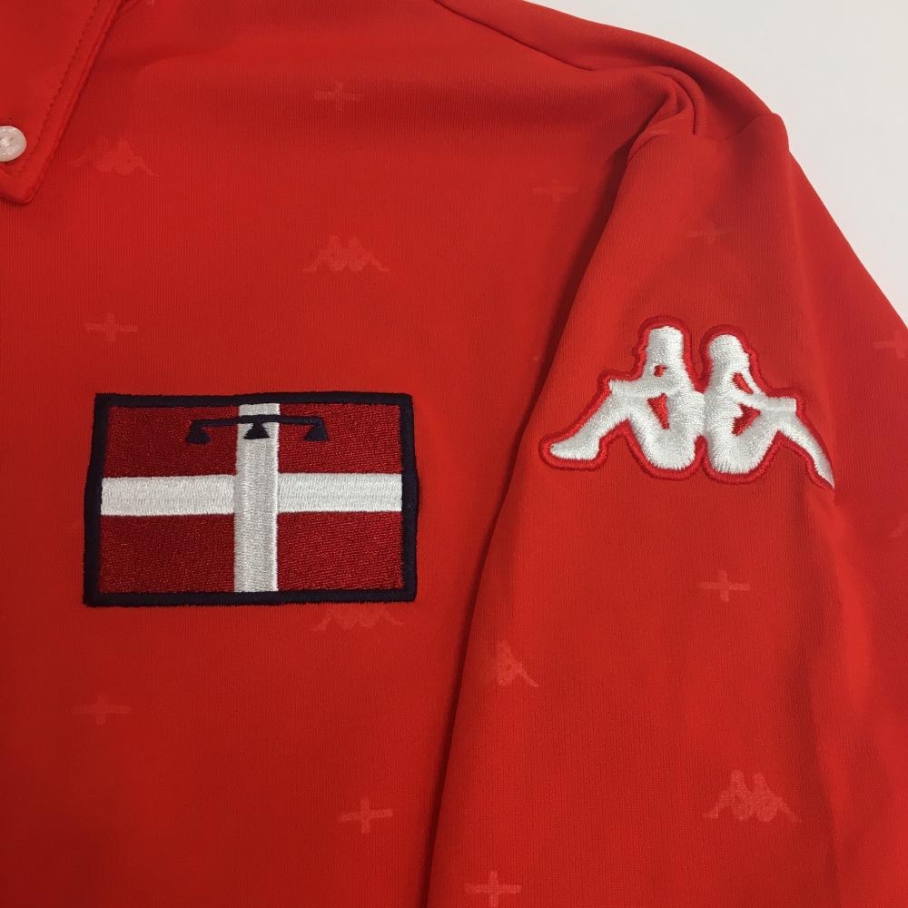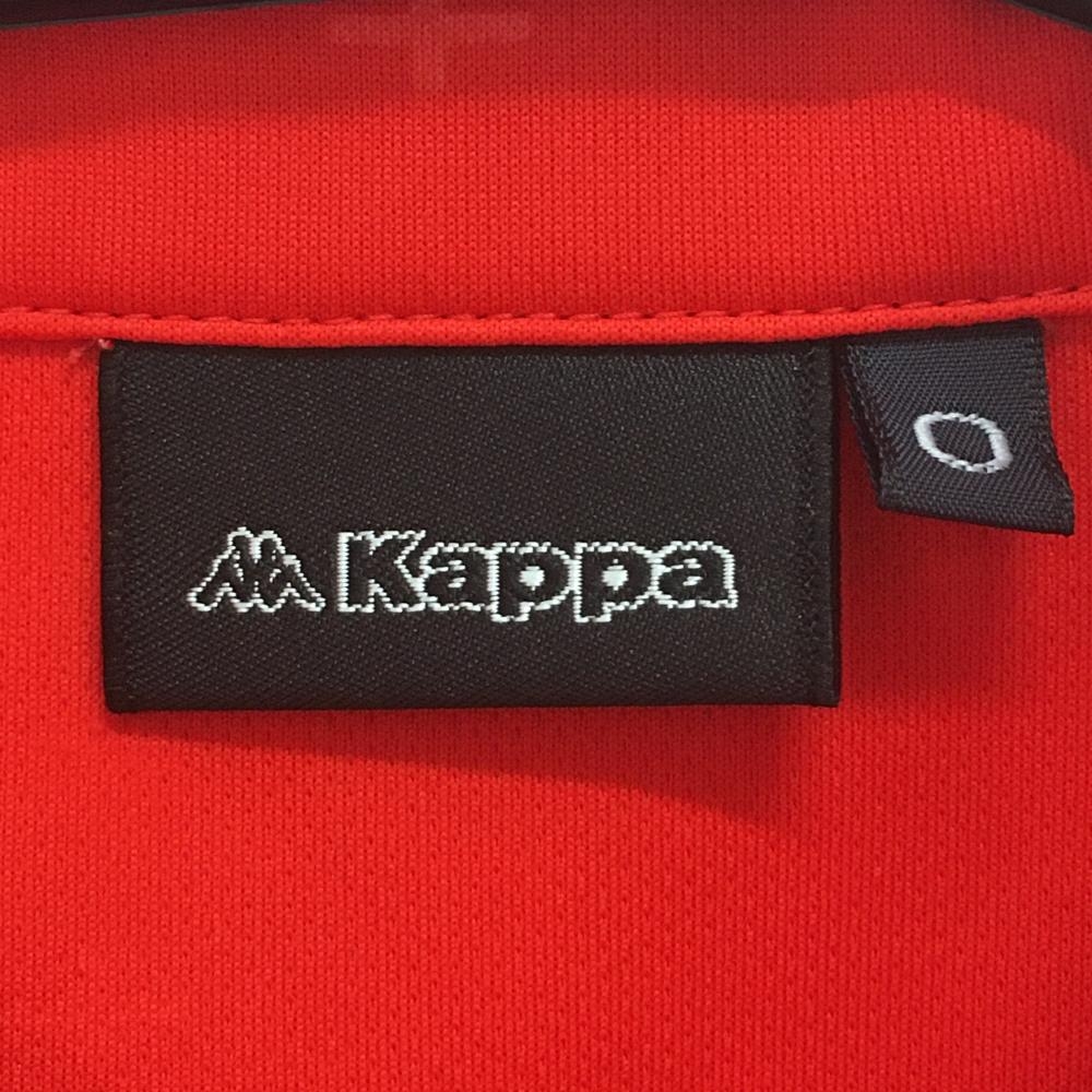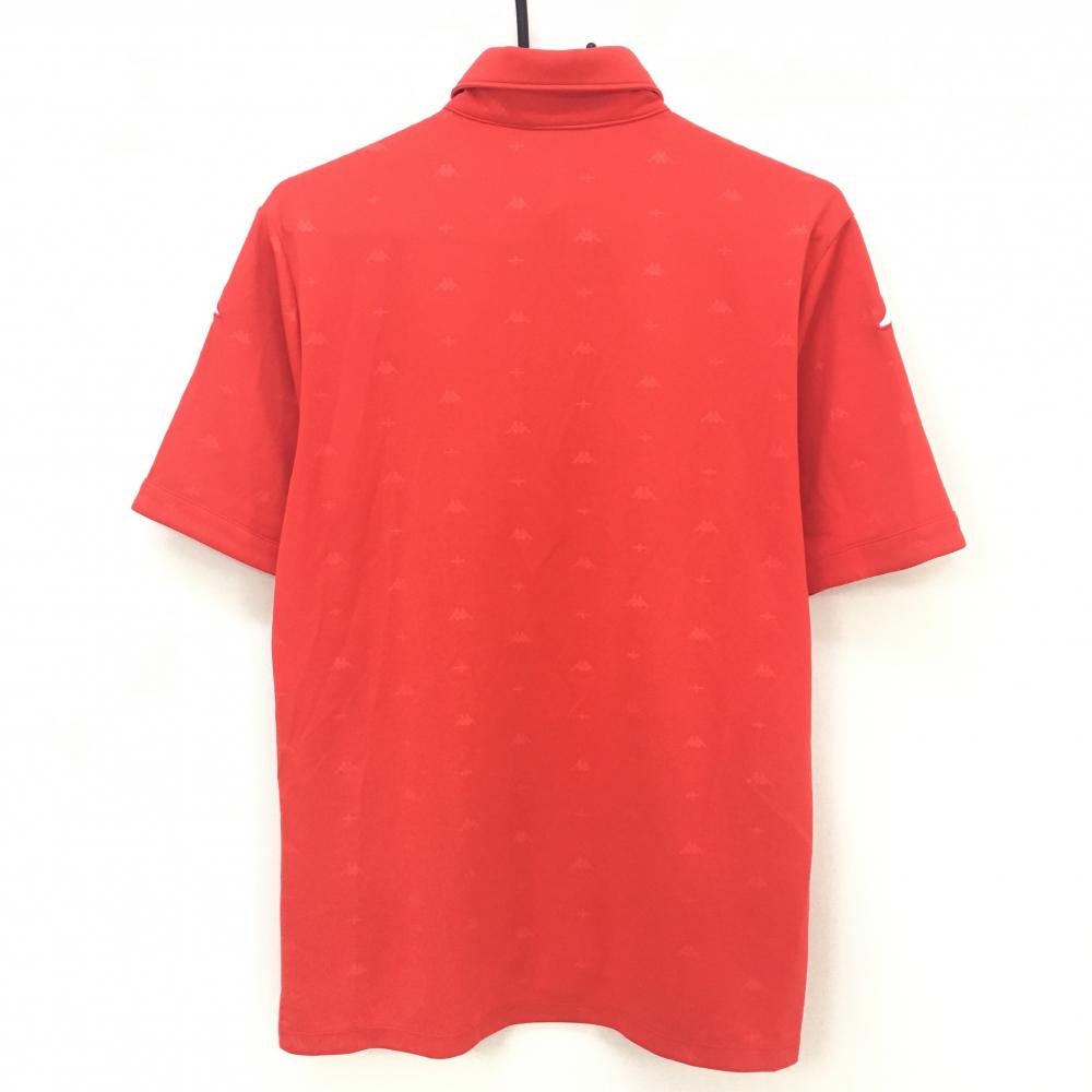 【超美品】カッパ 半袖ポロシャツ レッド系 ロゴ総柄地模様 ボタンダウン メンズ 0(XL) ゴルフウェア Kappa