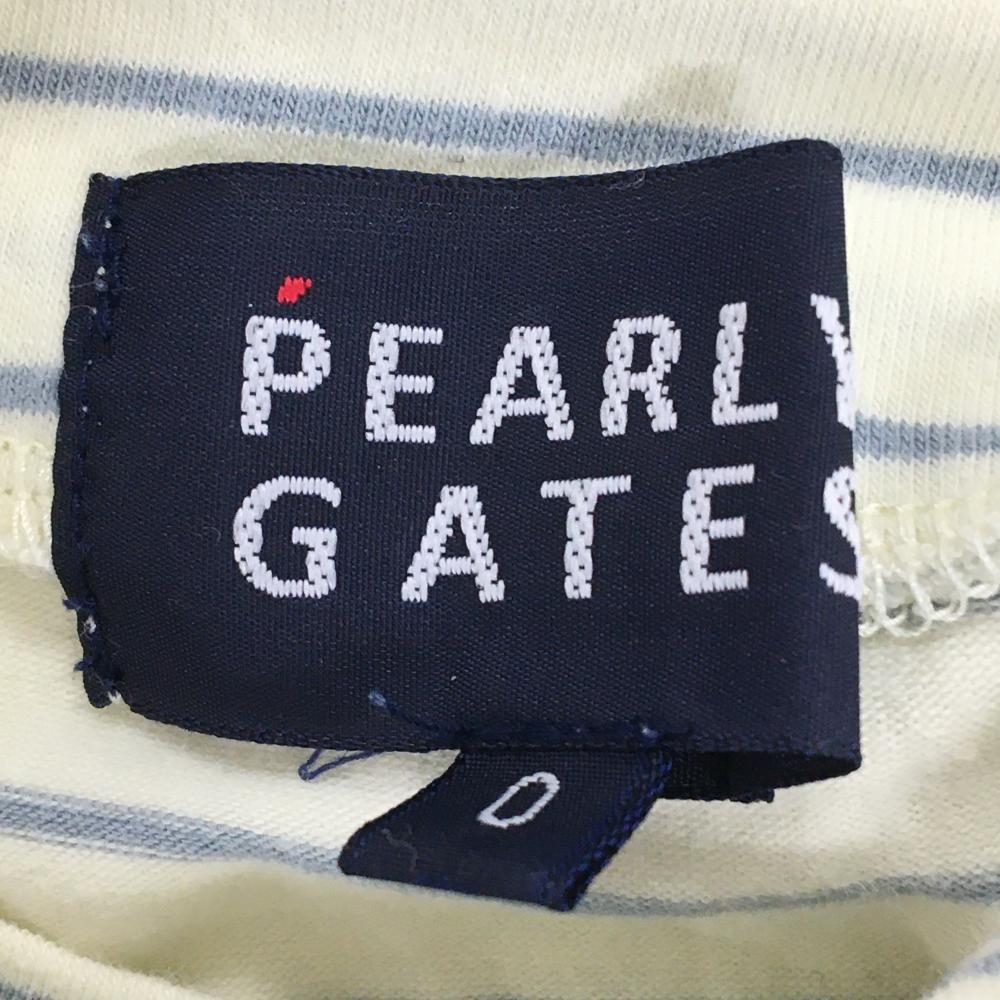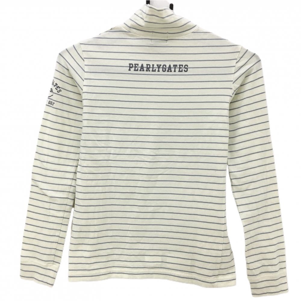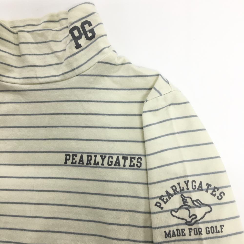 【美品】パーリーゲイツ 長袖ハイネックシャツ アイボリー×グレー ボーダー レディース 0(S) ゴルフウェア PEARLY GATES