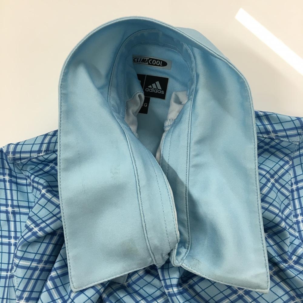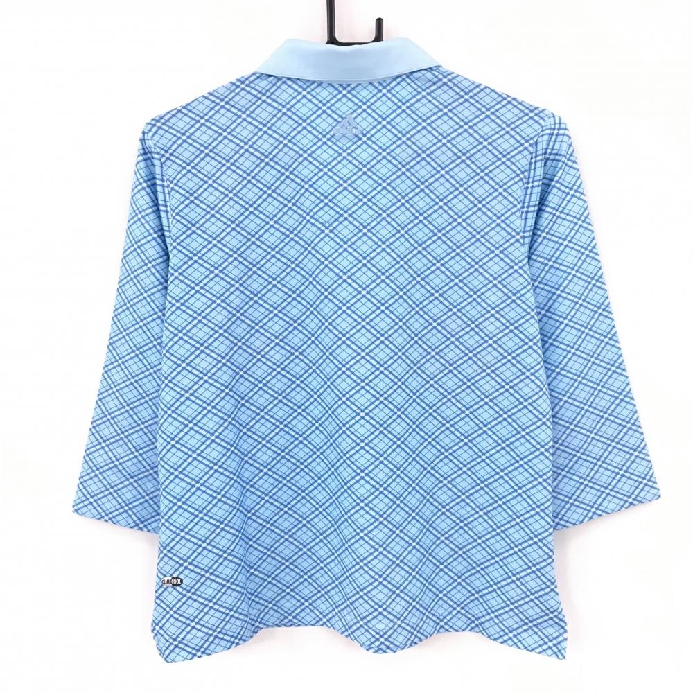 アディダス 七分袖ポロシャツ ライトブルー×白 チェック CLIMACOOL レディース OT/XG ゴルフウェア adidas