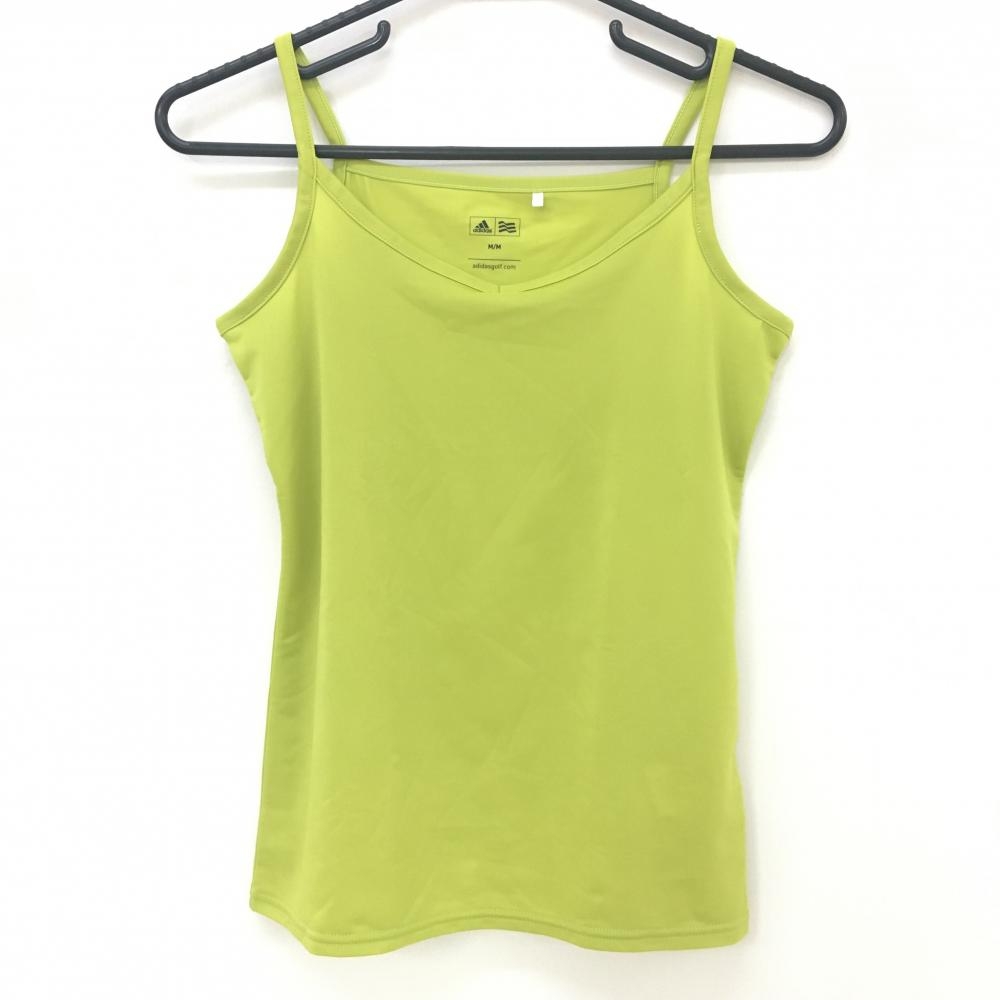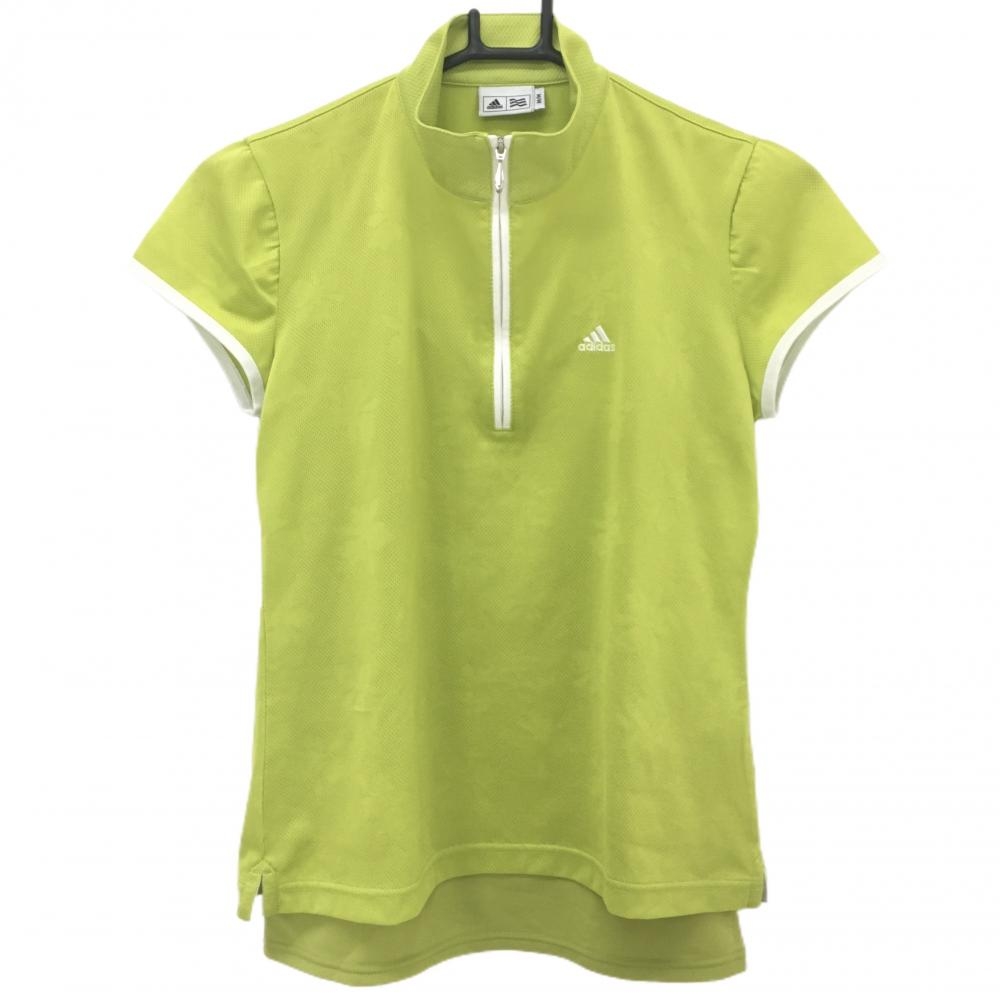 【超美品】アディダス 半袖ハイネックシャツ ライトグリーン 織生地 キャミソール付 ハーフジップ レディース M ゴルフウェア adidas