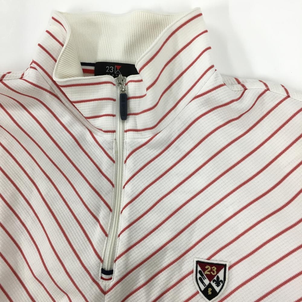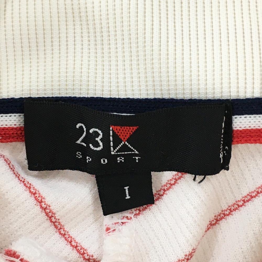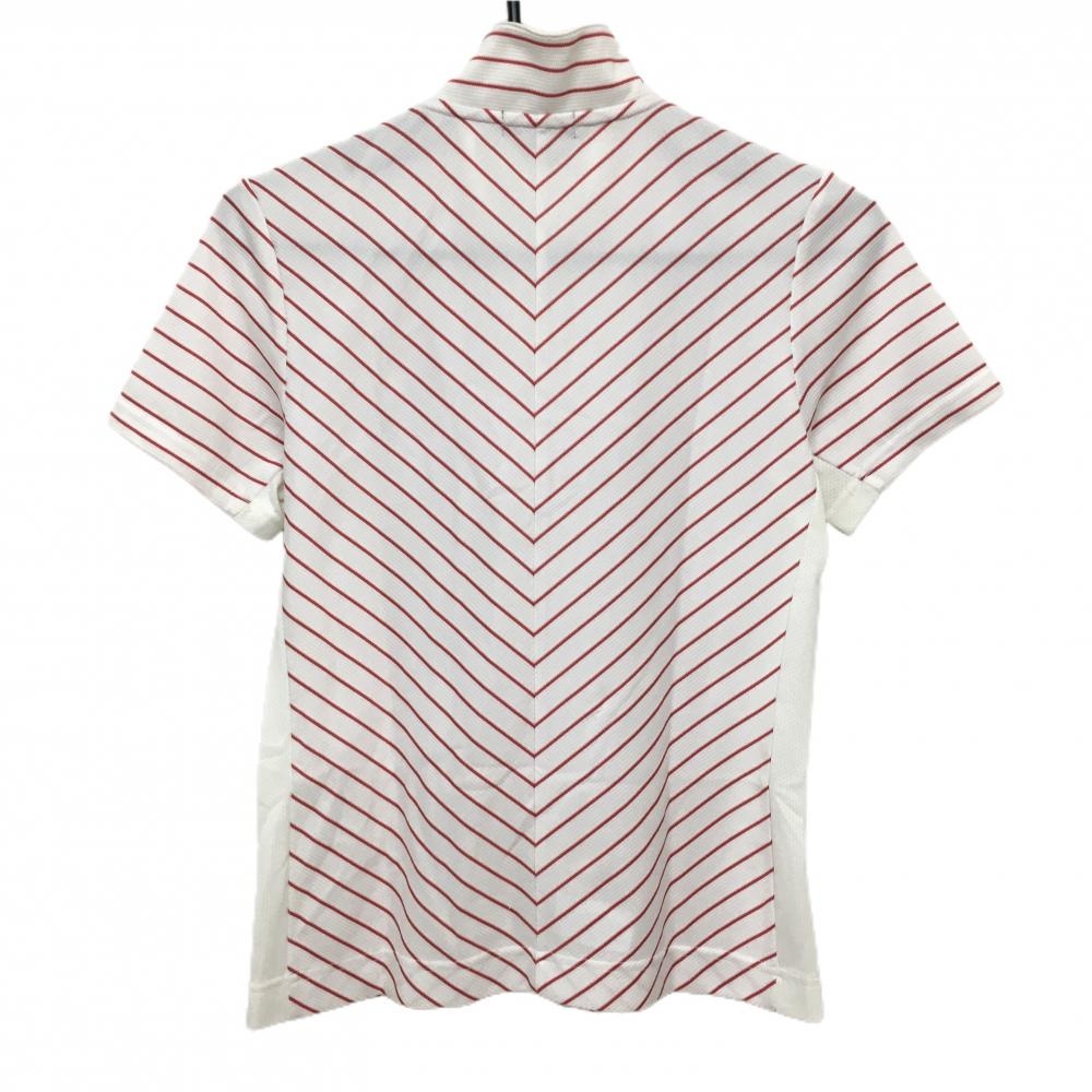 【超美品】23区スポーツ 半袖ハイネックシャツ 白×ピンク 斜めストライプ サイドメッシュ レディース I(M) ゴルフウェア 23区