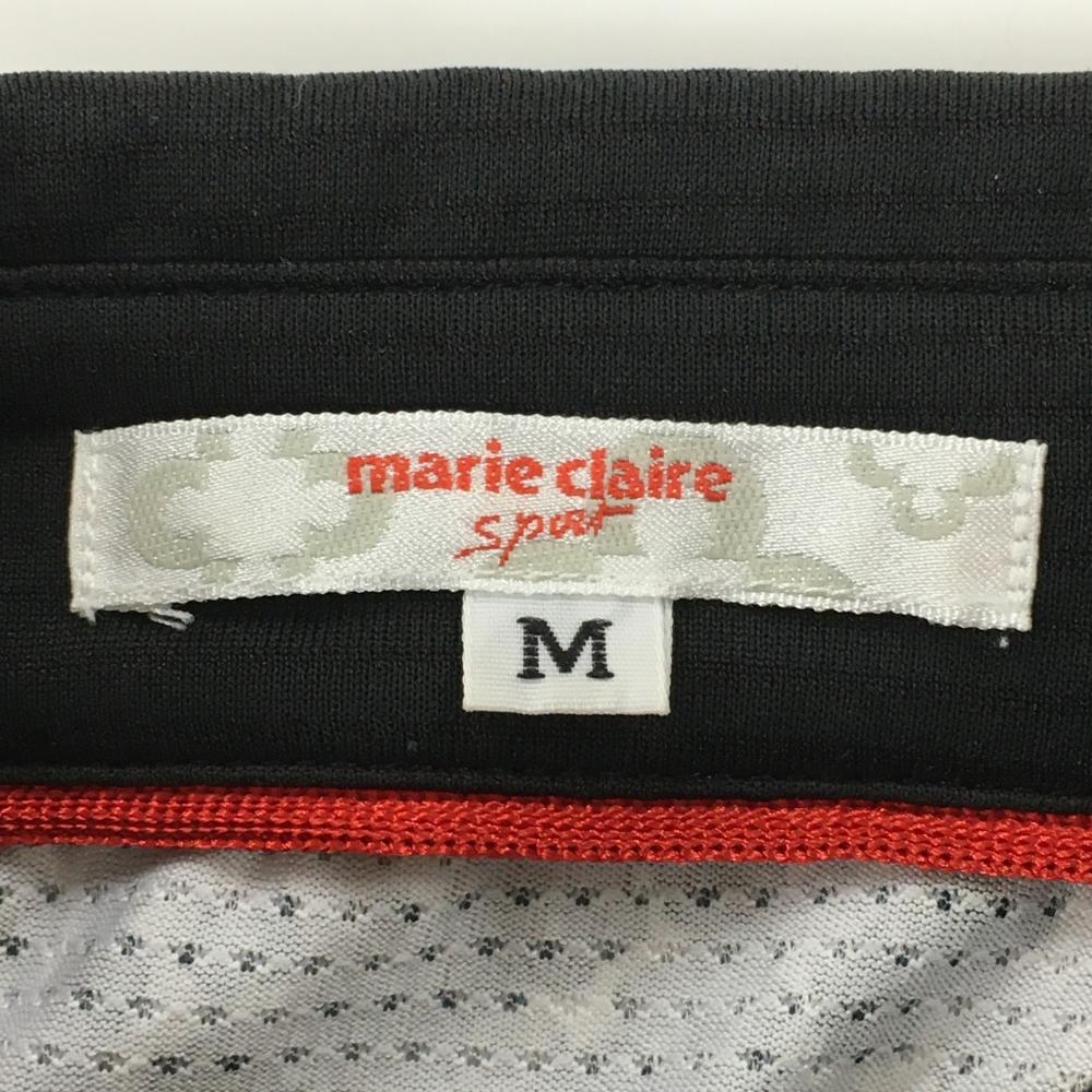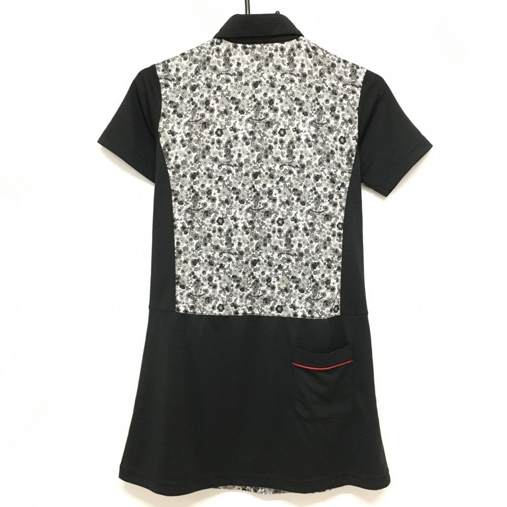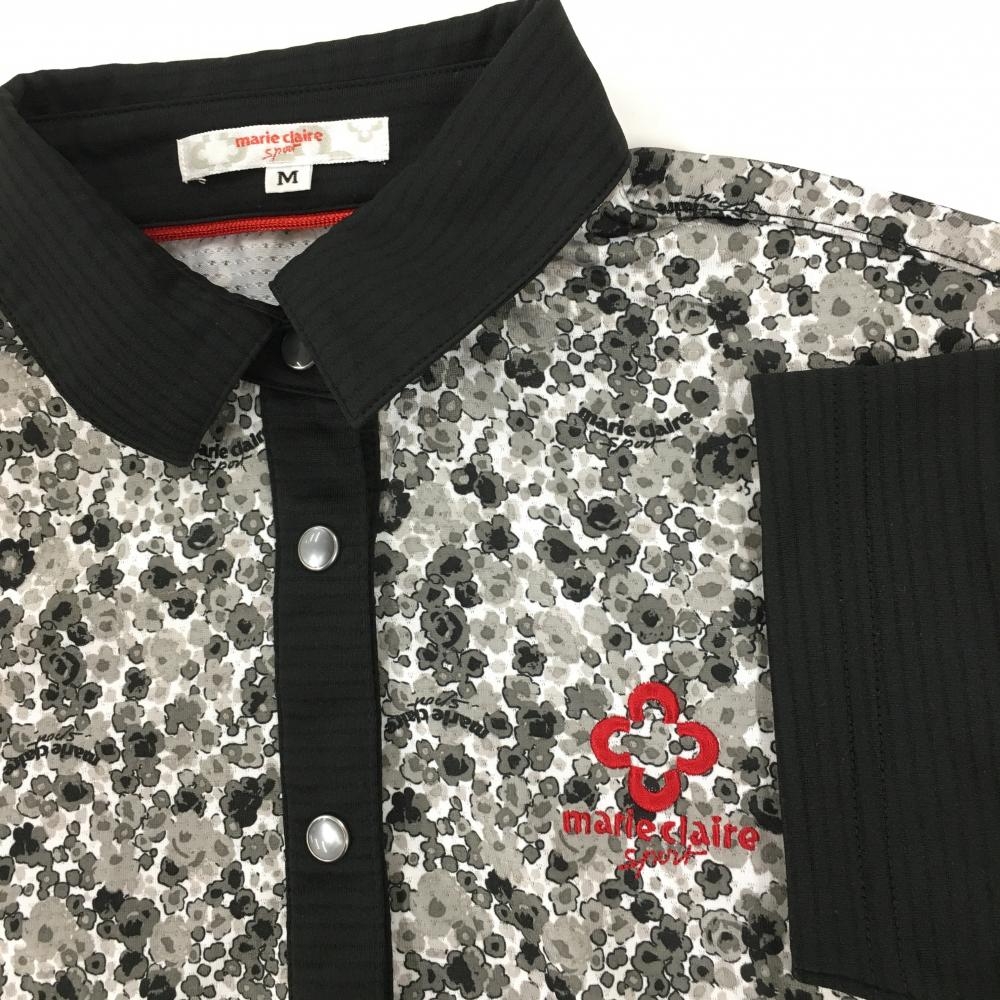 【超美品】マリクレールスポール 半袖ポロワンピース グレー×黒 花柄 ボーダー織生地 レディース M ゴルフウェア marie claire