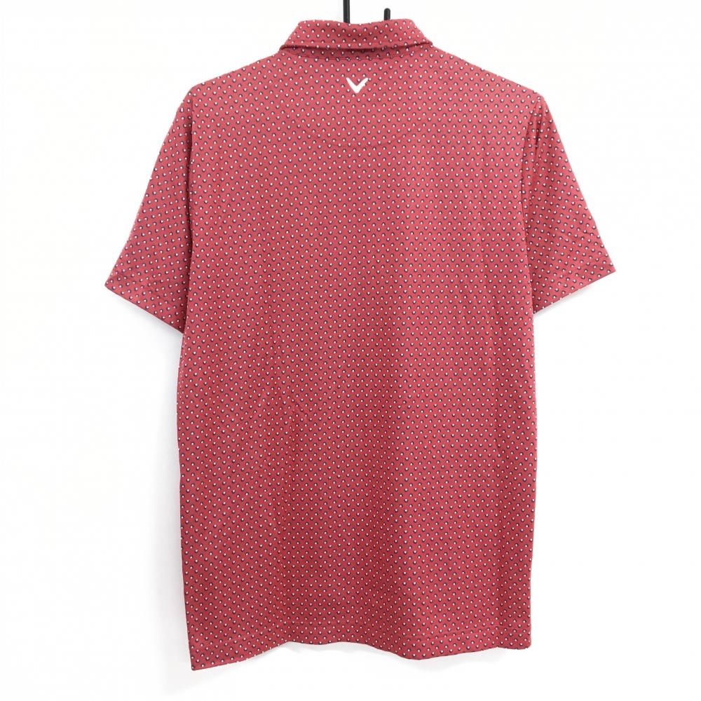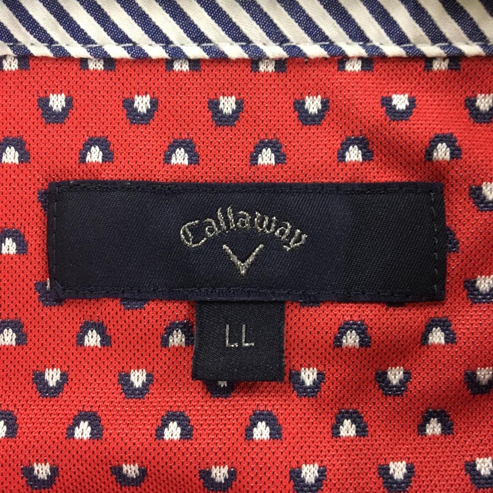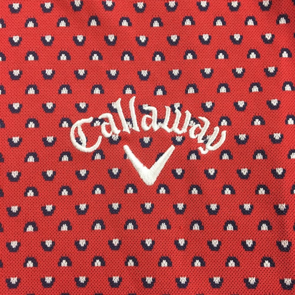 【超美品】キャロウェイ 半袖ポロシャツ レッド×白 総柄 ロゴ刺しゅう メンズ LL ゴルフウェア Callaway