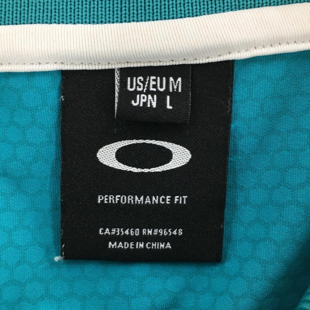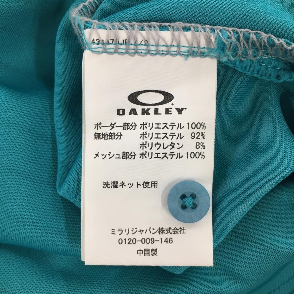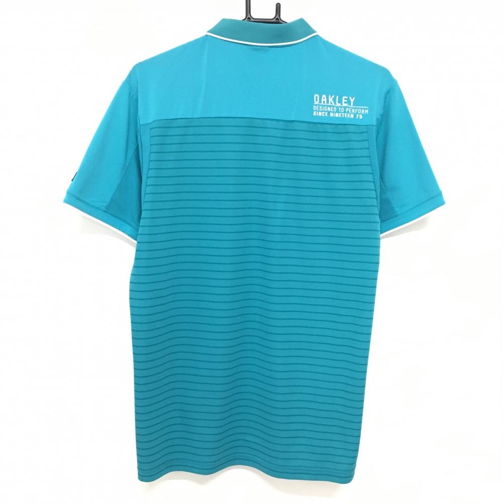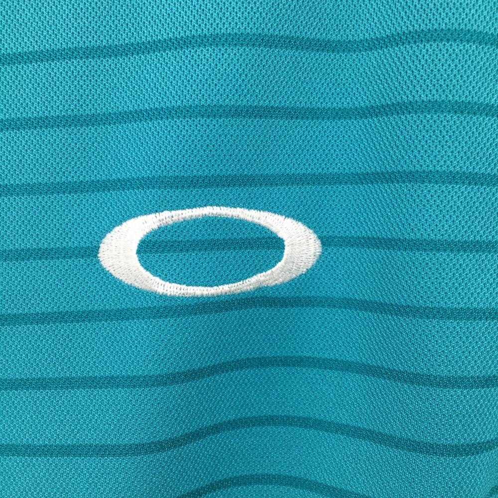 【美品】オークリー 半袖ポロシャツ グリーン系 身頃ボーダー プリント白 メンズ L ゴルフウェア Oakley