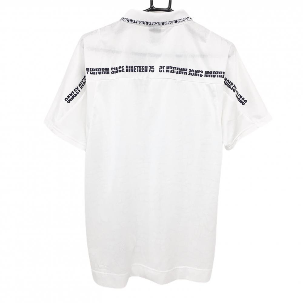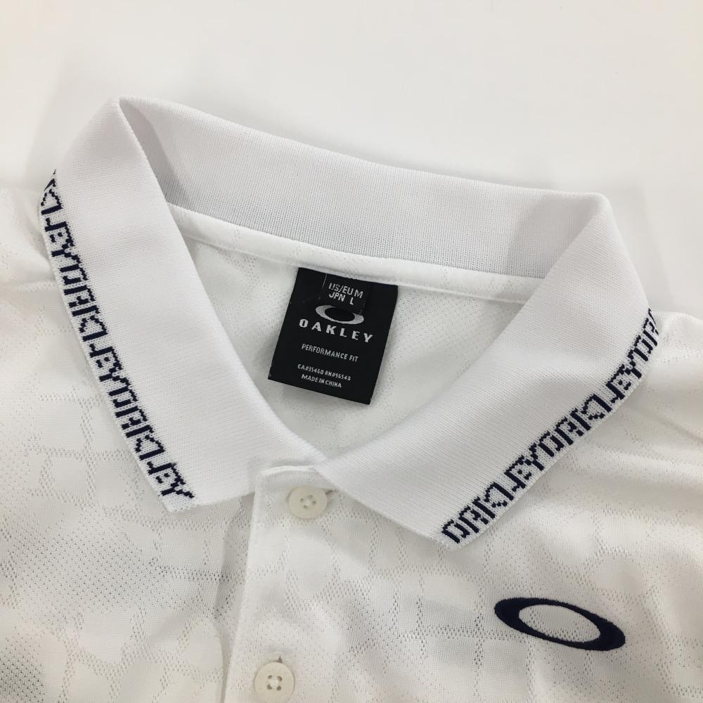 【超美品】オークリー 半袖ポロシャツ 白 地模様総柄 襟ロゴ メンズ L ゴルフウェア Oakley