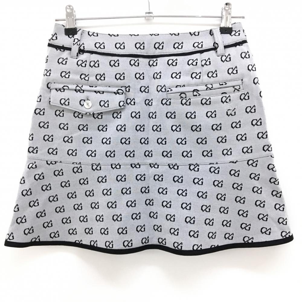 【美品】キャロウェイレッドレーベル スカート ライトグレー×黒 モノグラム総柄 ラインストーンロゴ レディース S ゴルフウェア Callaway