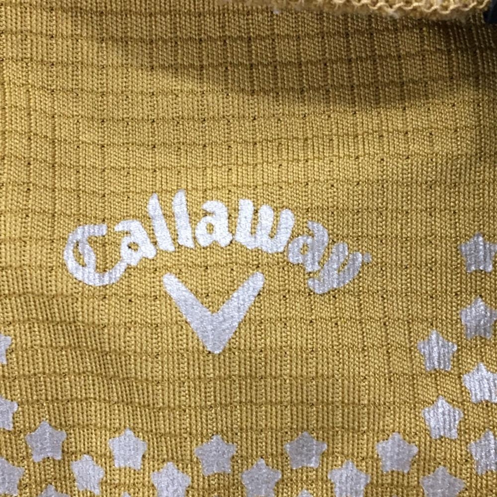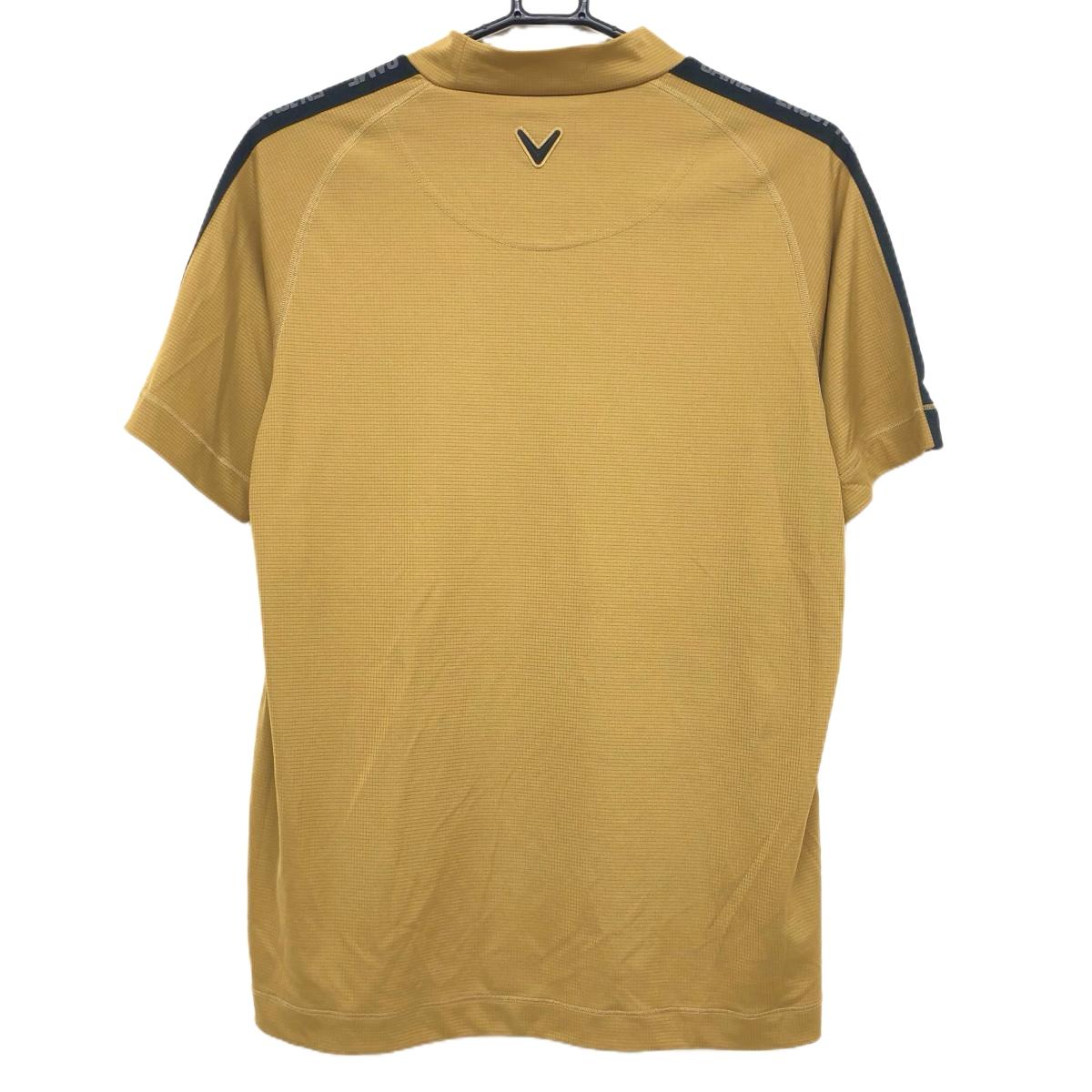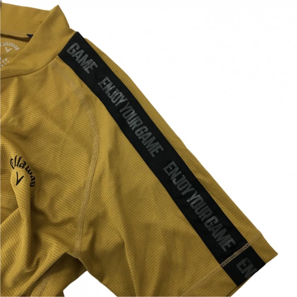 【超美品】キャロウェイ 半袖ハイネックシャツ イエローブラウン×黒 格子織生地 肩英字ライン メンズ L ゴルフウェア Callaway