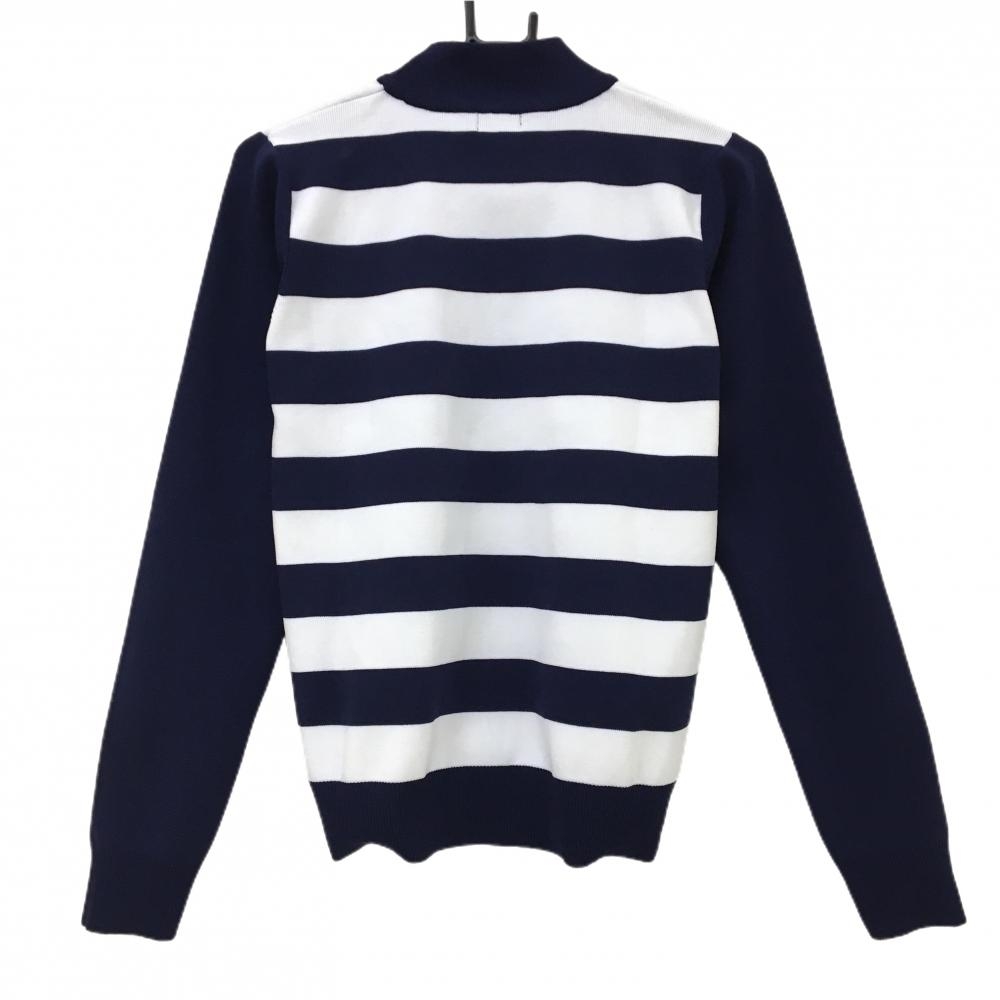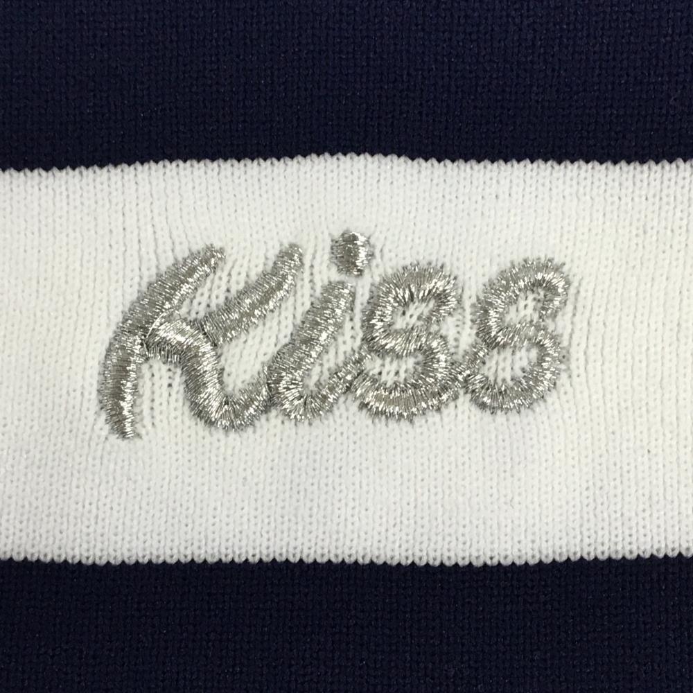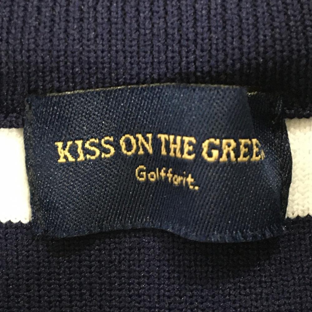 【超美品】キスオンザグリーン ハイネックセーター ネイビー×白 ボーダー ロゴ刺しゅう レディース 3(L) ゴルフウェア kiss on the green