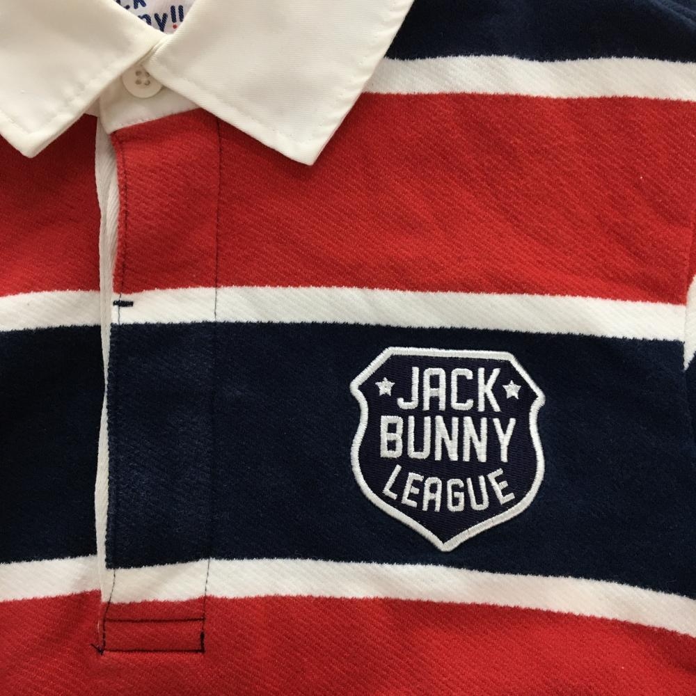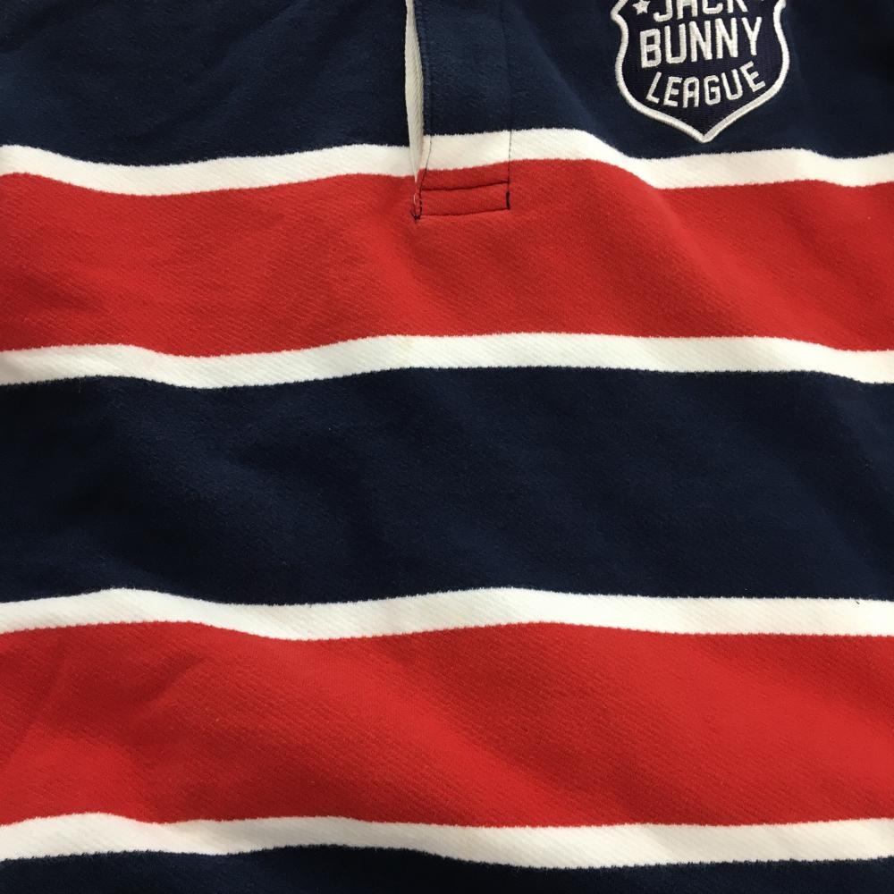 ジャックバニー 長袖ポロシャツ ネイビー×レッド ボーダー ロゴ刺しゅう メンズ 4(M) ゴルフウェア Jack Bunny