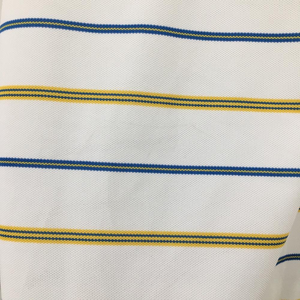 カッターアンドバック 半袖ハイネックシャツ 白×イエロー ボーダー ハーフジップ メンズ 42(L) ゴルフウェア CUTTER&BUCK