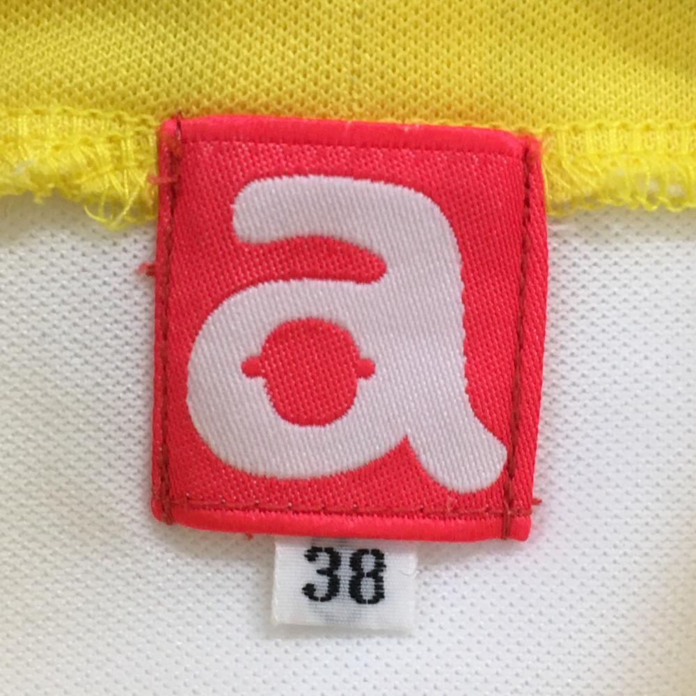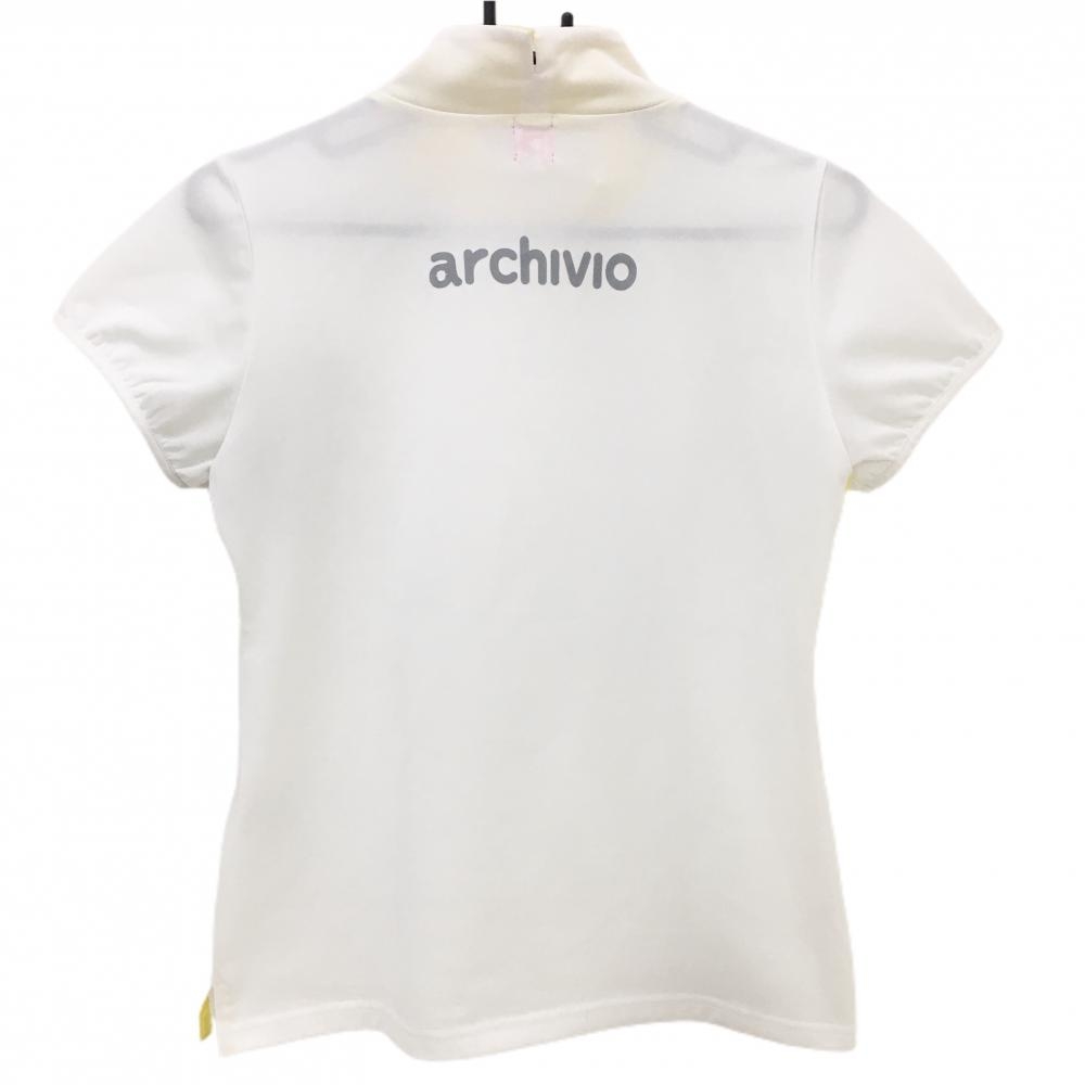 アルチビオ 半袖ハイネックシャツ 白×イエロー ワッペンラインストーン レディース 38(M) ゴルフウェア archivio