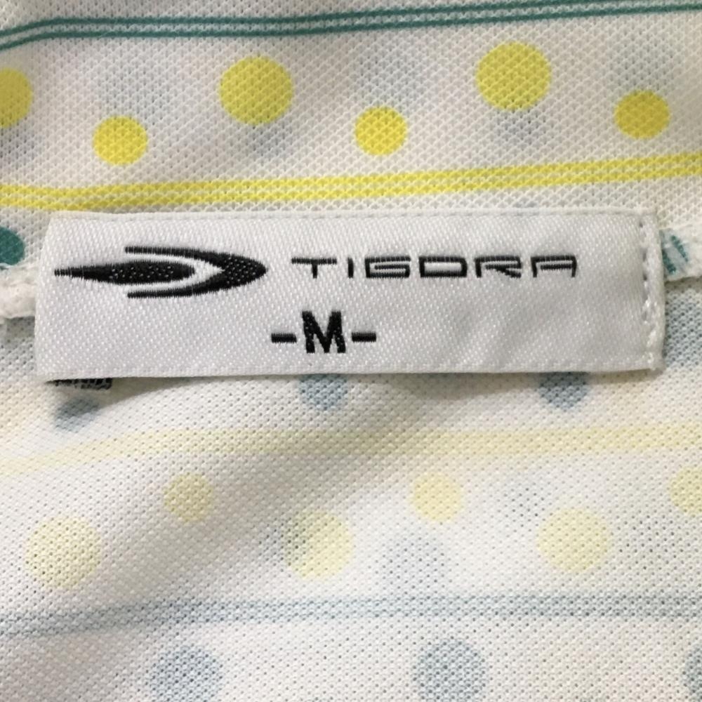 【超美品】ティゴラ 長袖ハイネックシャツ 白×グリーン×イエロー ボーダー ドット 袖シャーリング レディース M ゴルフウェア TIGORA