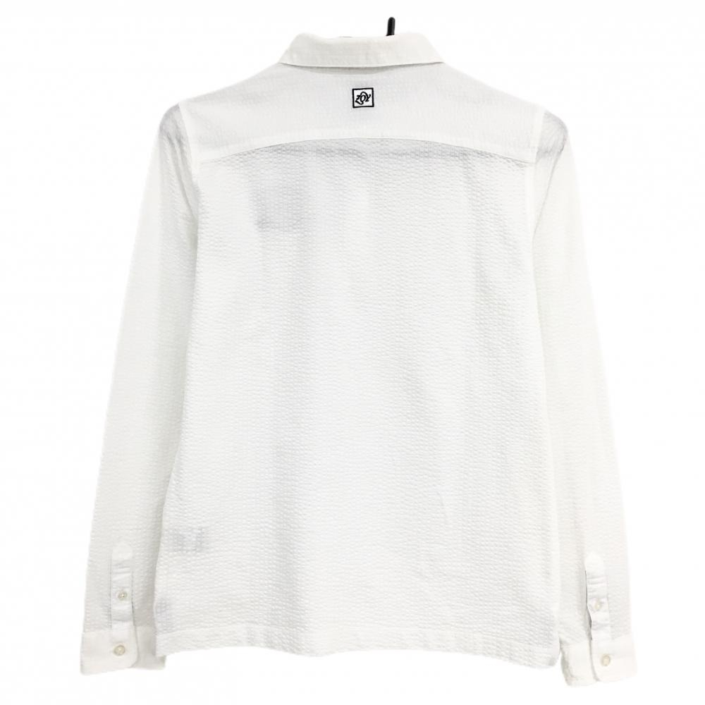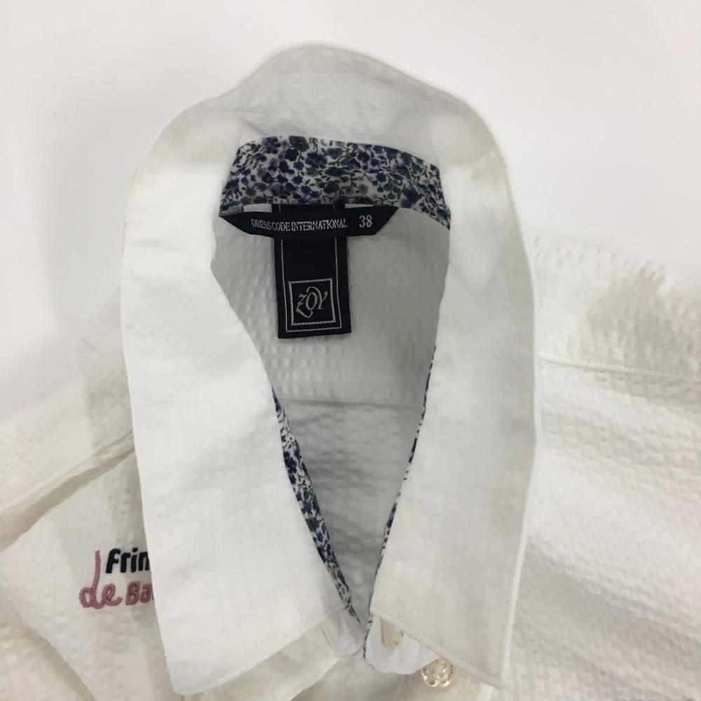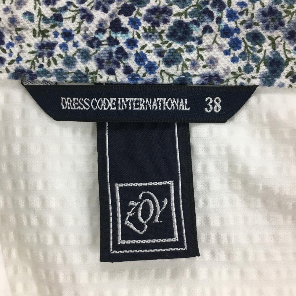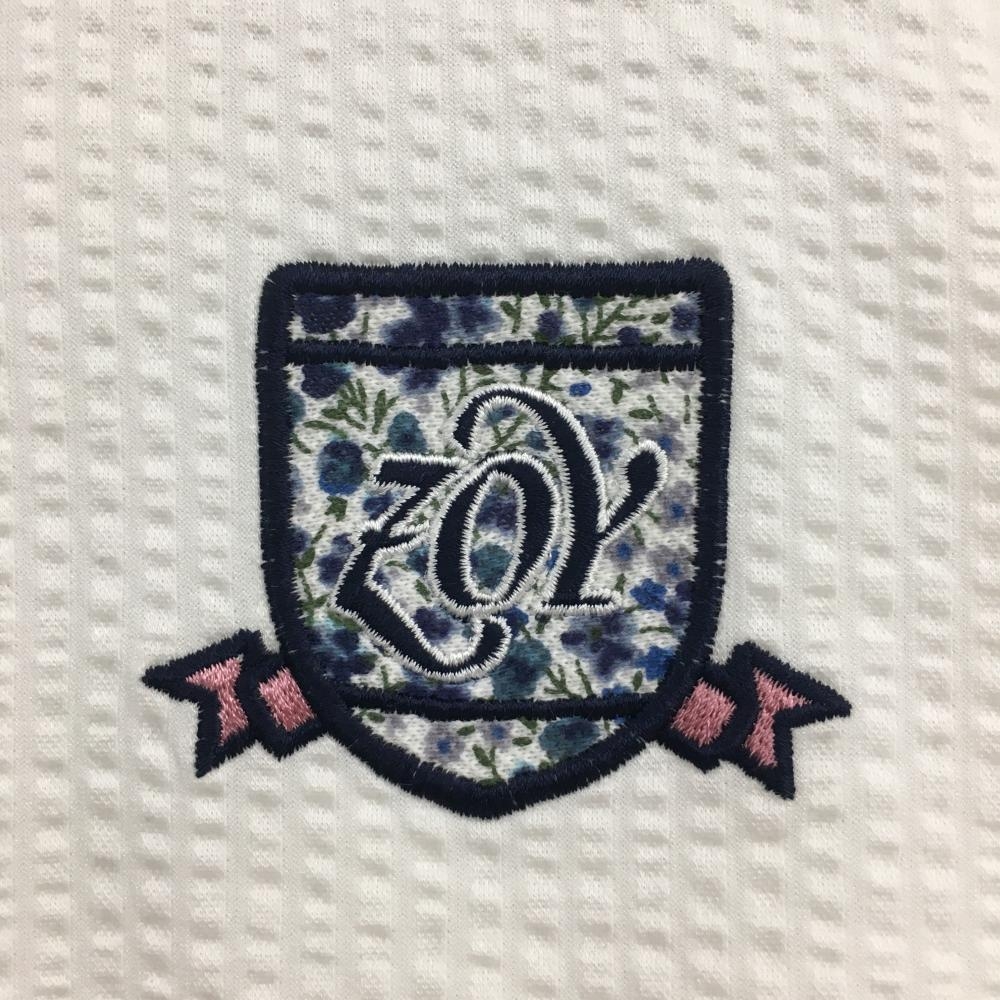ゾーイ 長袖ポロシャツ 白×ネイビー 織生地 一部花柄 レディース 38(M) ゴルフウェア ZOY