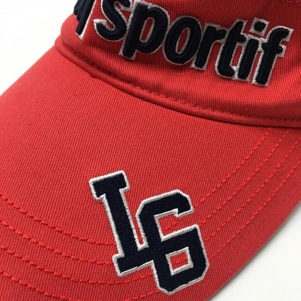 ルコック サンバイザー レッド系×ネイビー 立体ロゴ刺しゅう F(55cm~57cm) ゴルフウェア le coq sportif