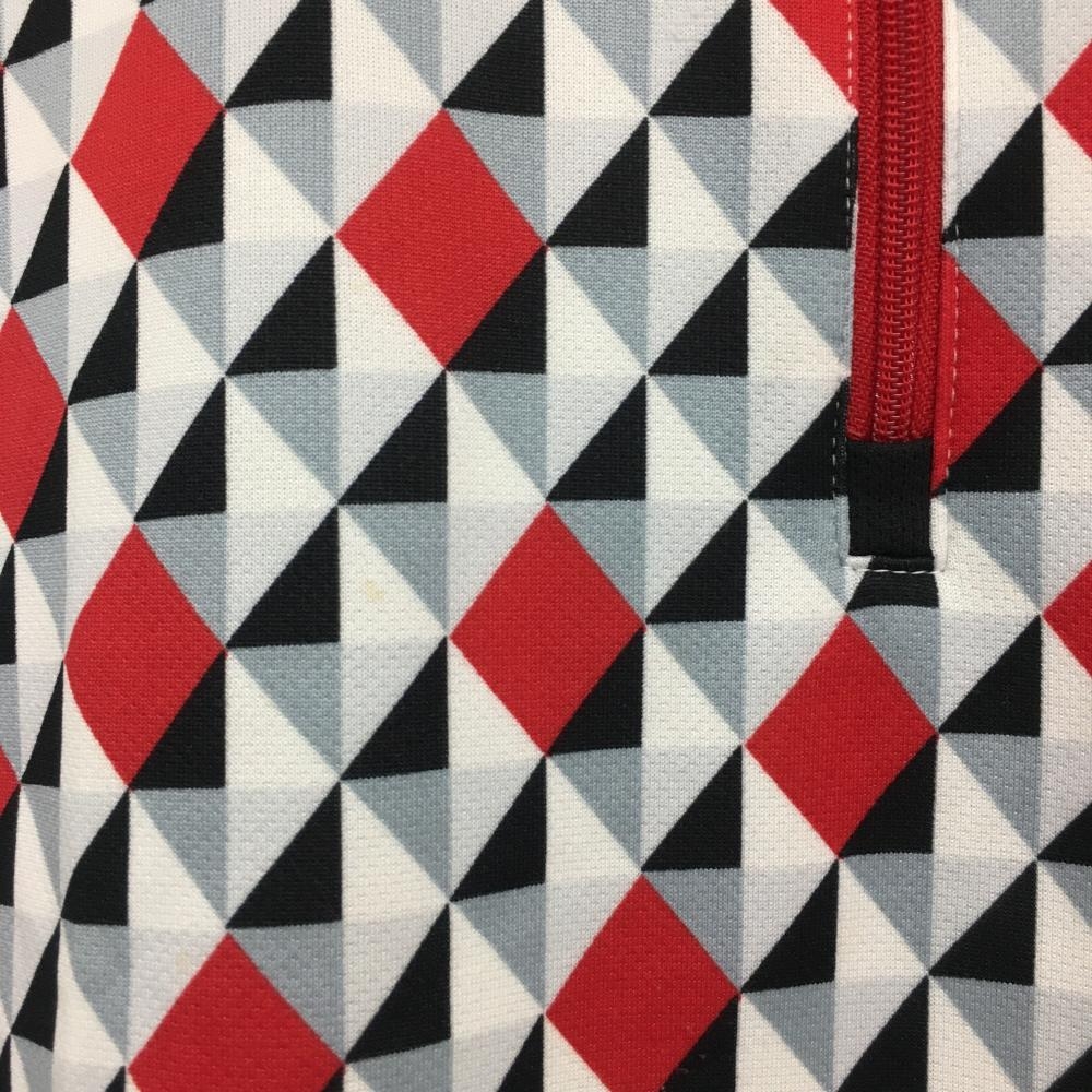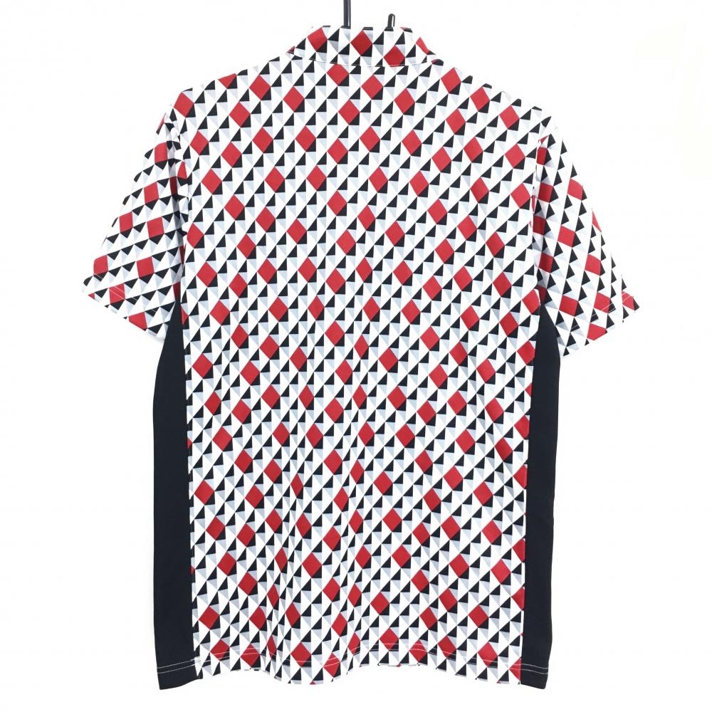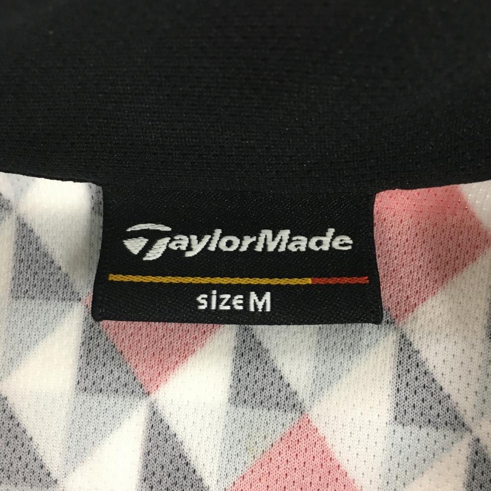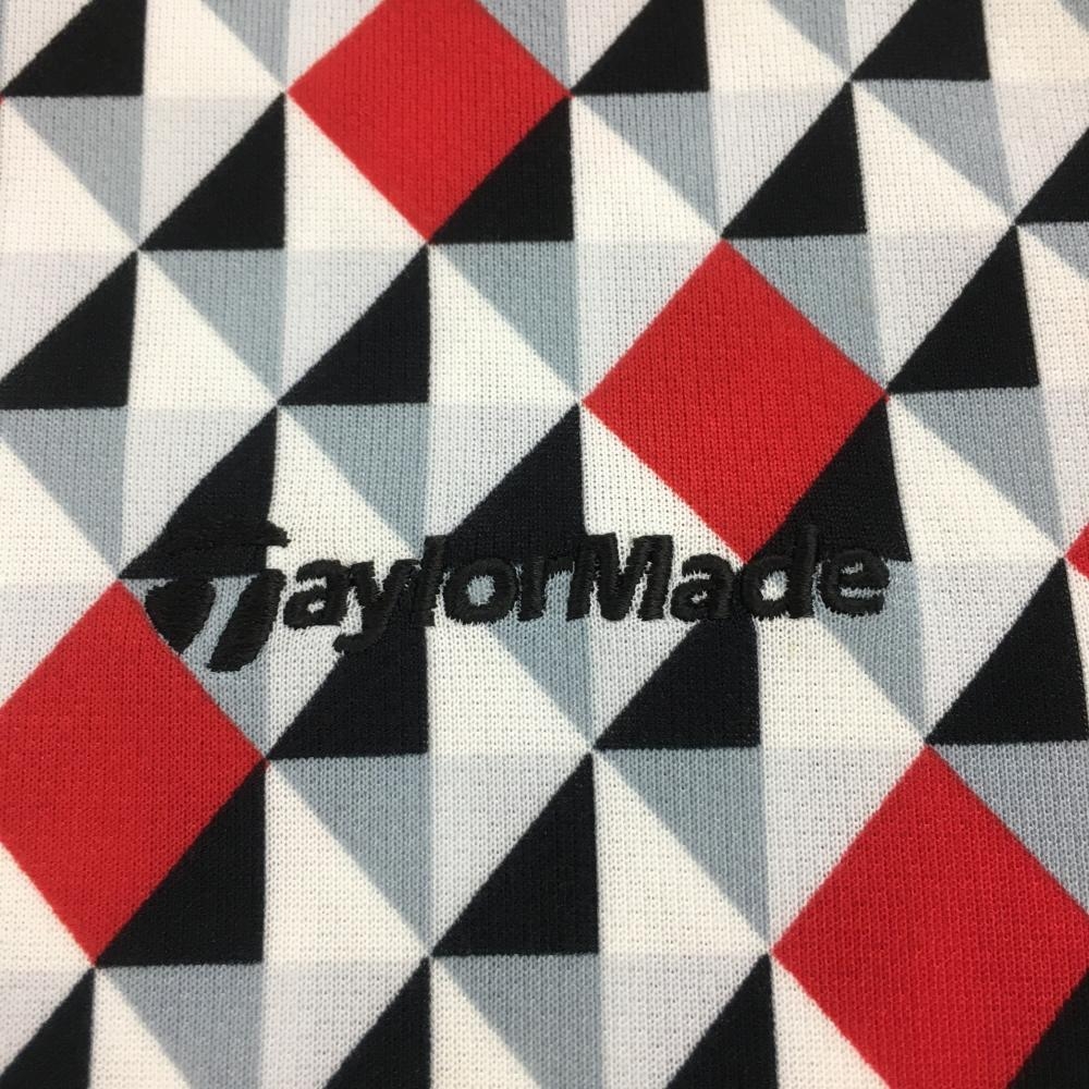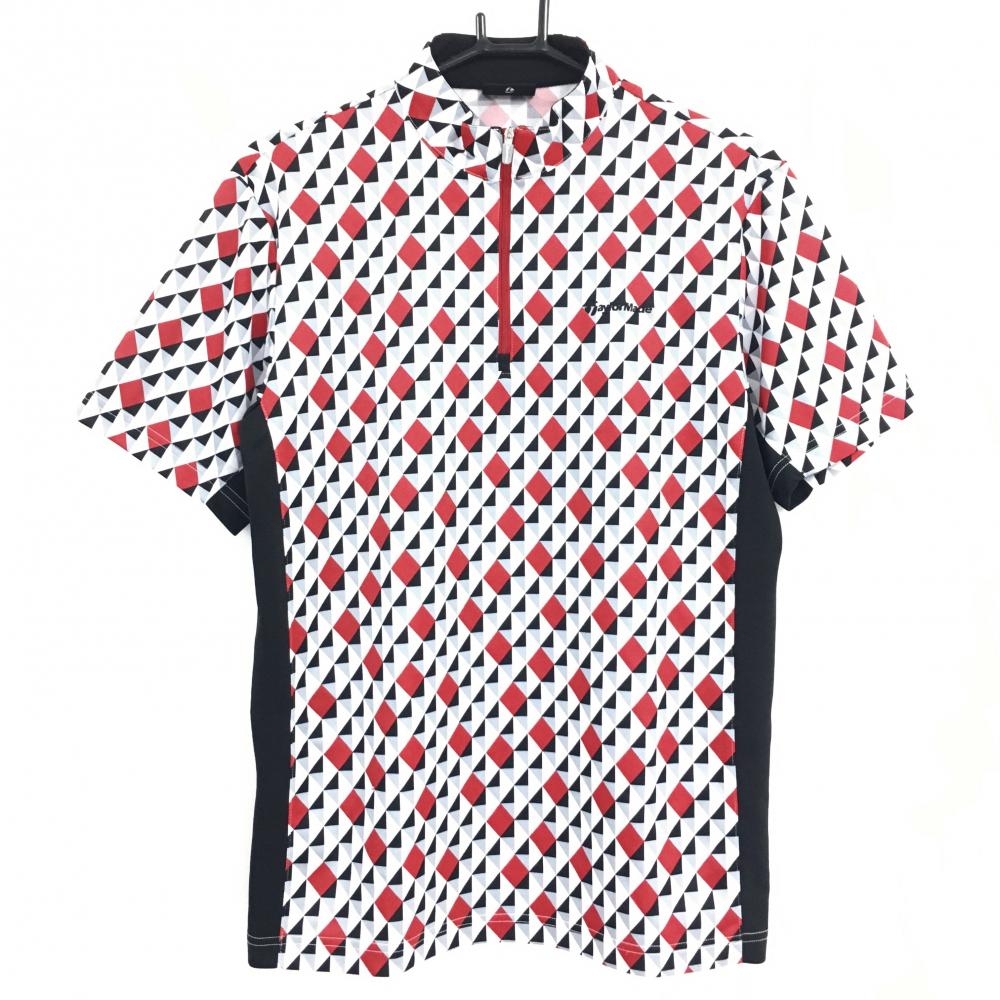 【超美品】テーラーメイド 半袖ハイネックシャツ 白×レッド×黒 総柄 ハーフジップ メンズ M ゴルフウェア TaylorMade