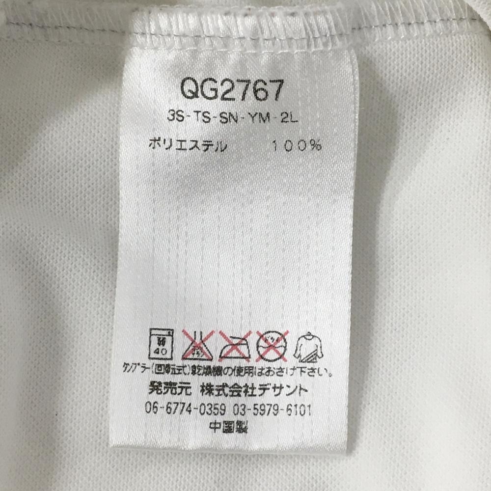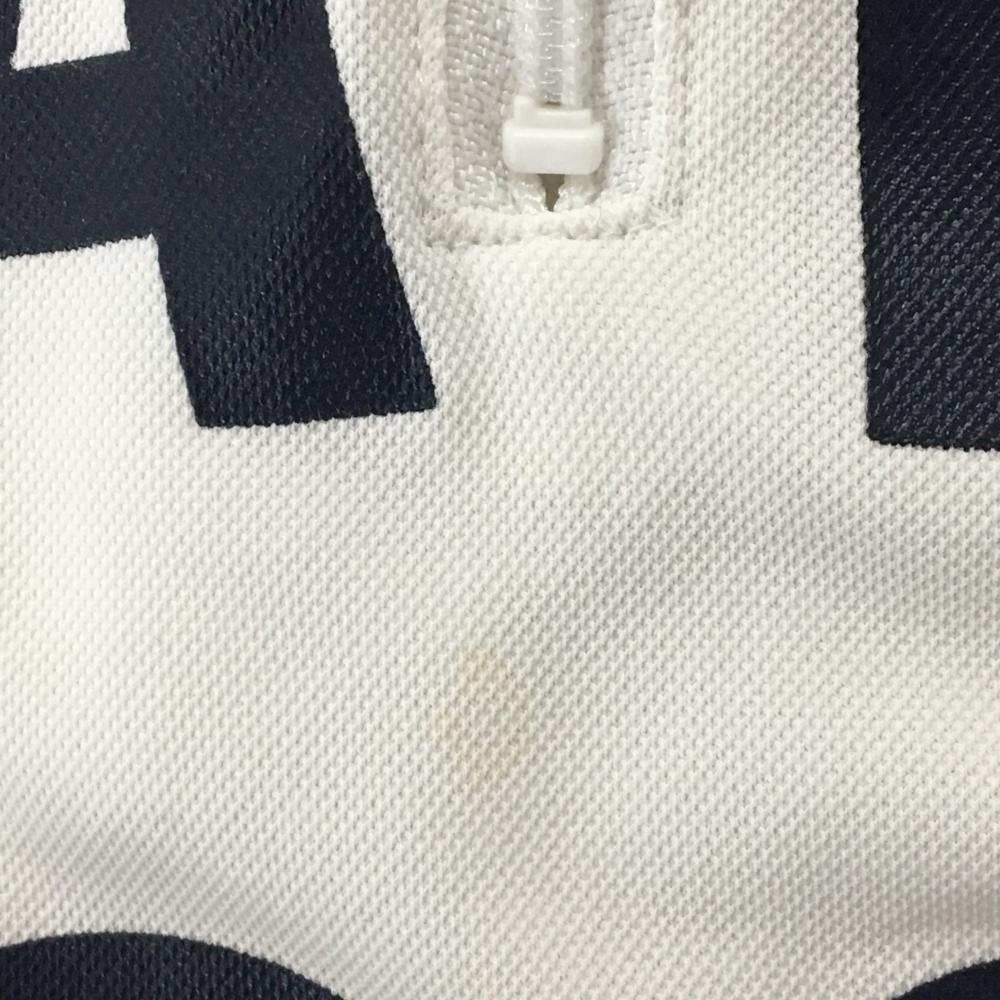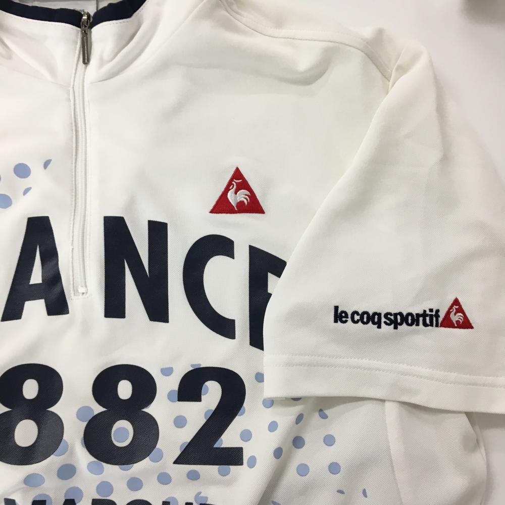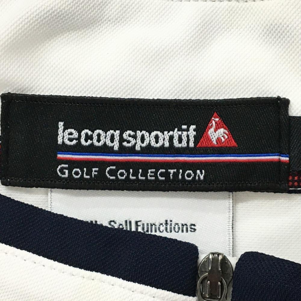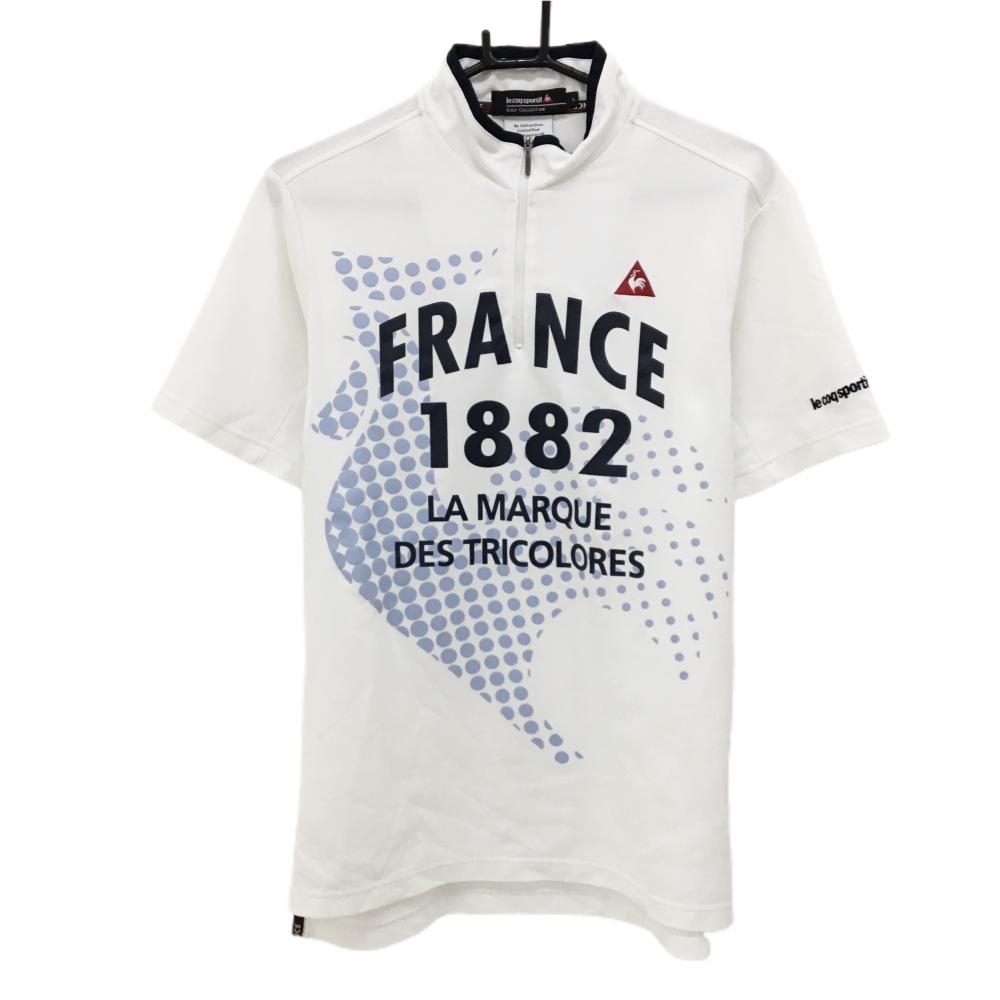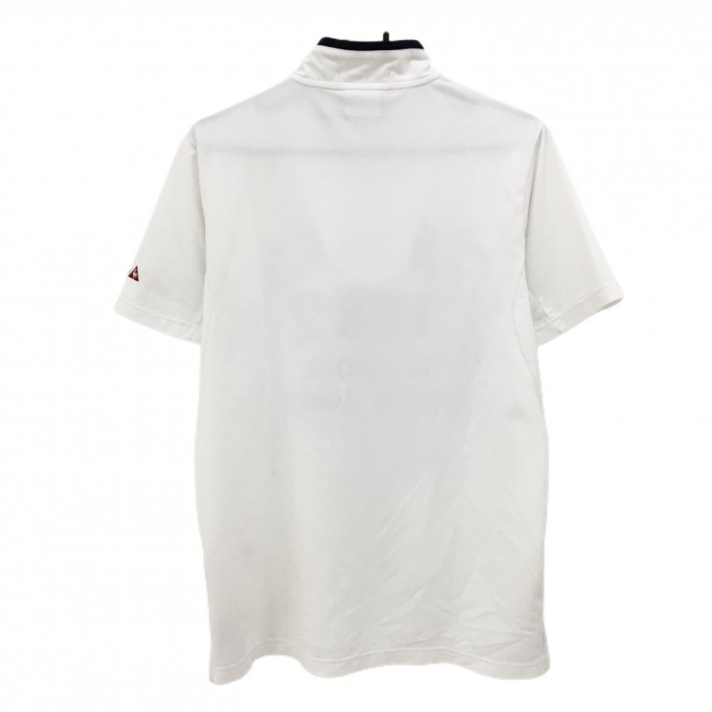 【美品】ルコックゴルフ 半袖ハイネックシャツ 白×ネイビー フロントプリント ハーフジップ メンズ L ゴルフウェア le coq sportif