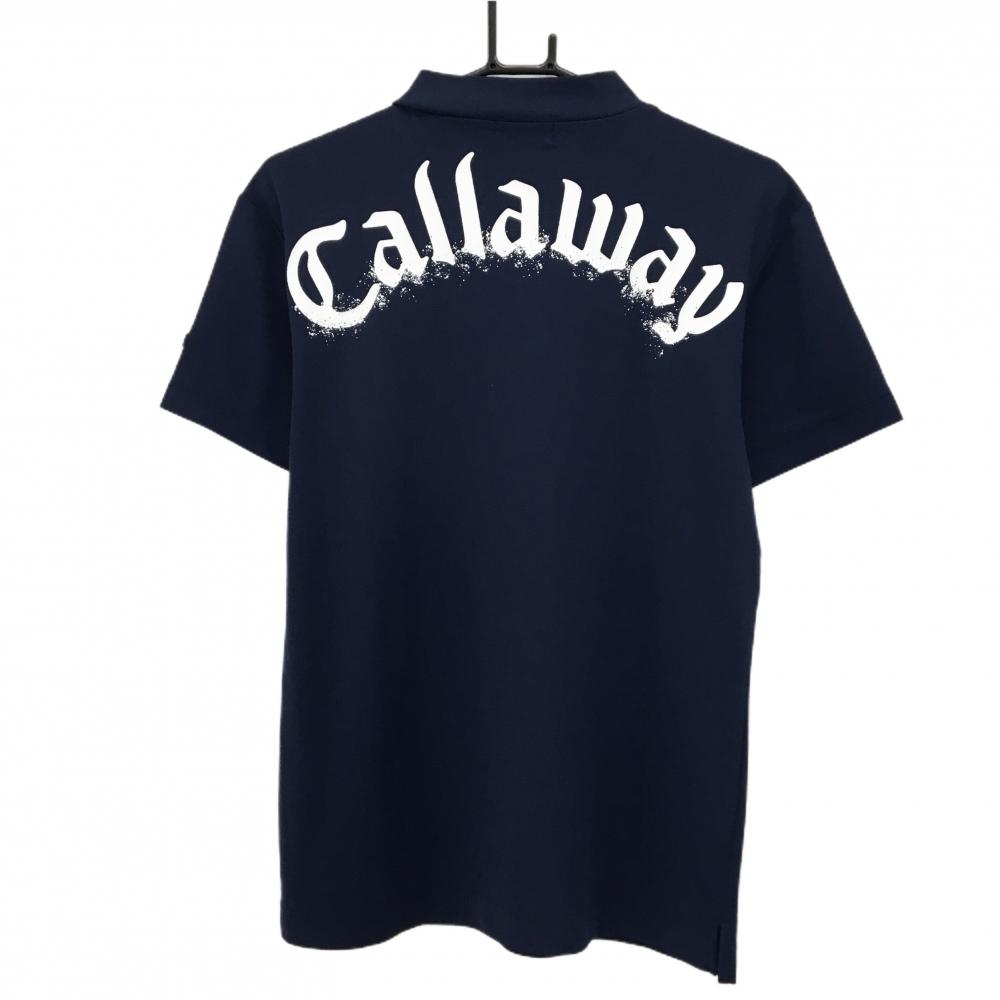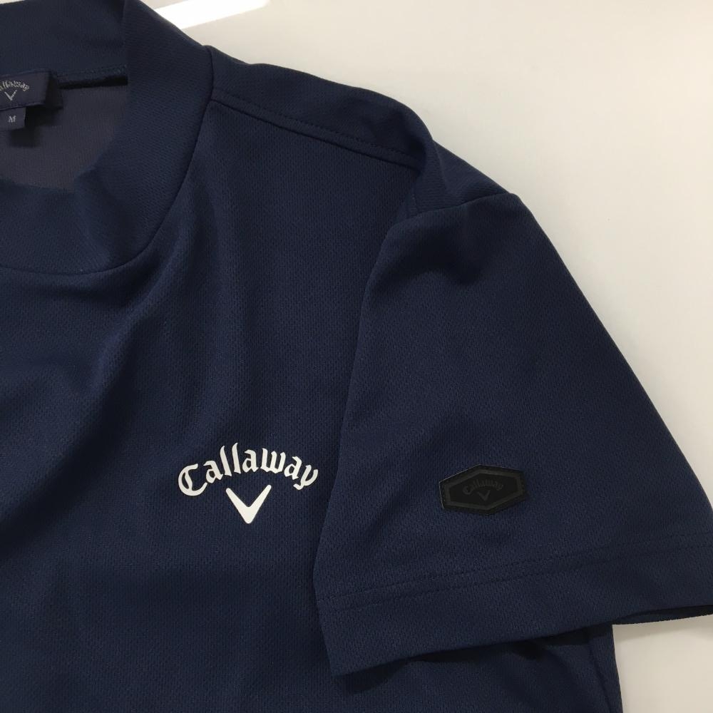 【超美品】キャロウェイ 半袖ハイネックシャツ ネイビー×白 バックロゴ メンズ M ゴルフウェア 2024年モデル Callaway