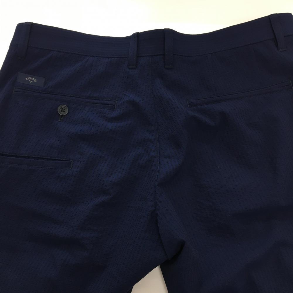 【美品】キャロウェイ パンツ ネイビー ストライプ柄 サッカー生地 バックロゴ メンズ LL ゴルフウェア Callaway