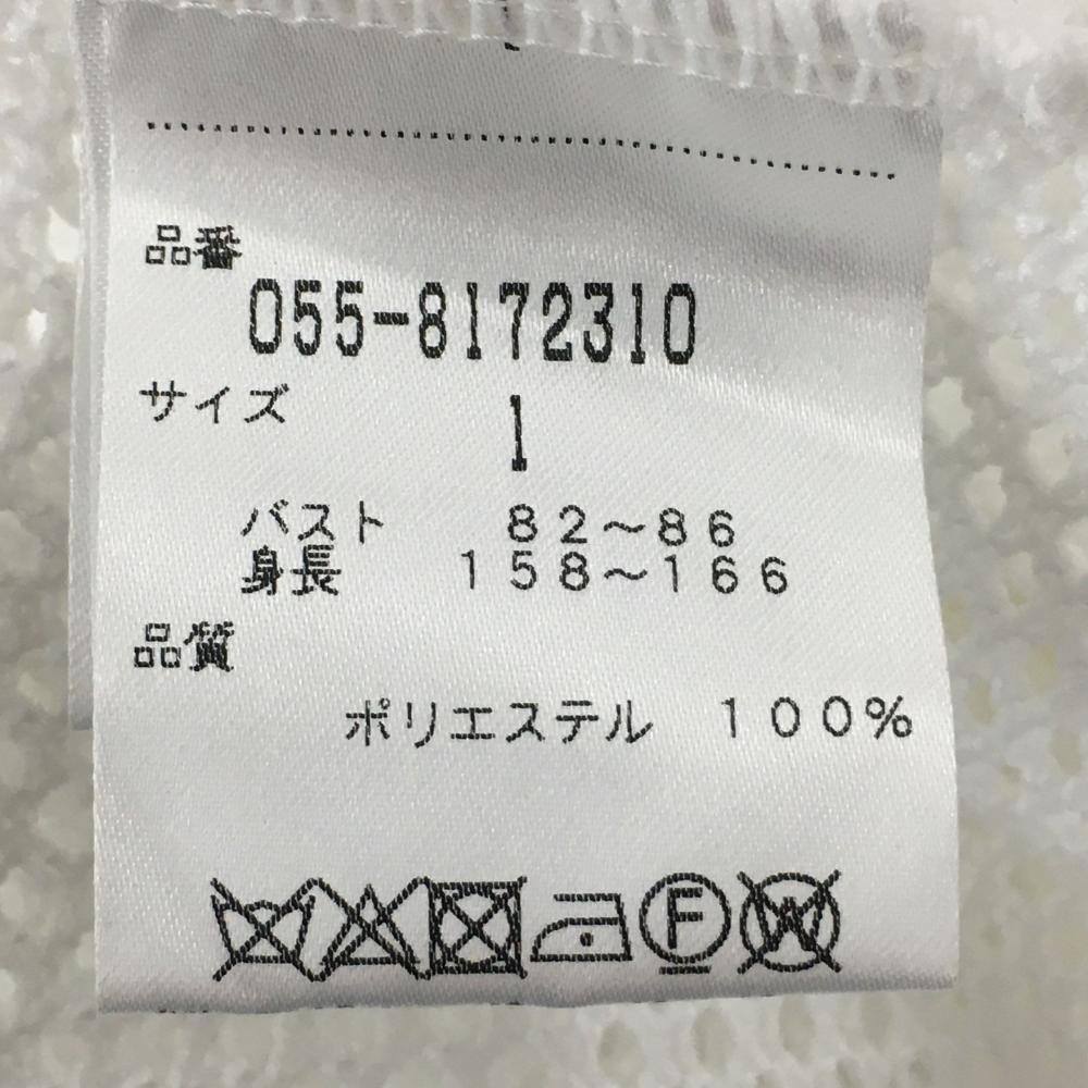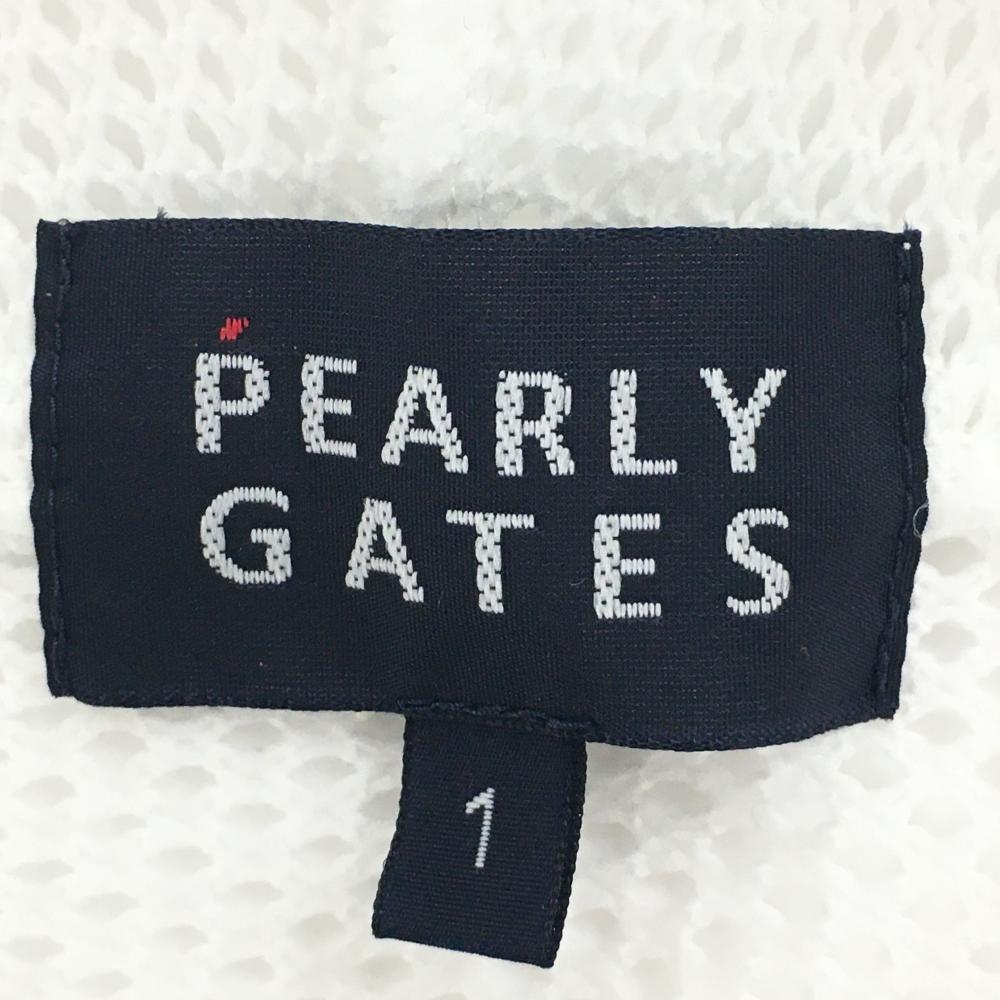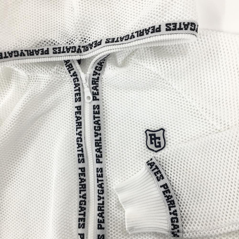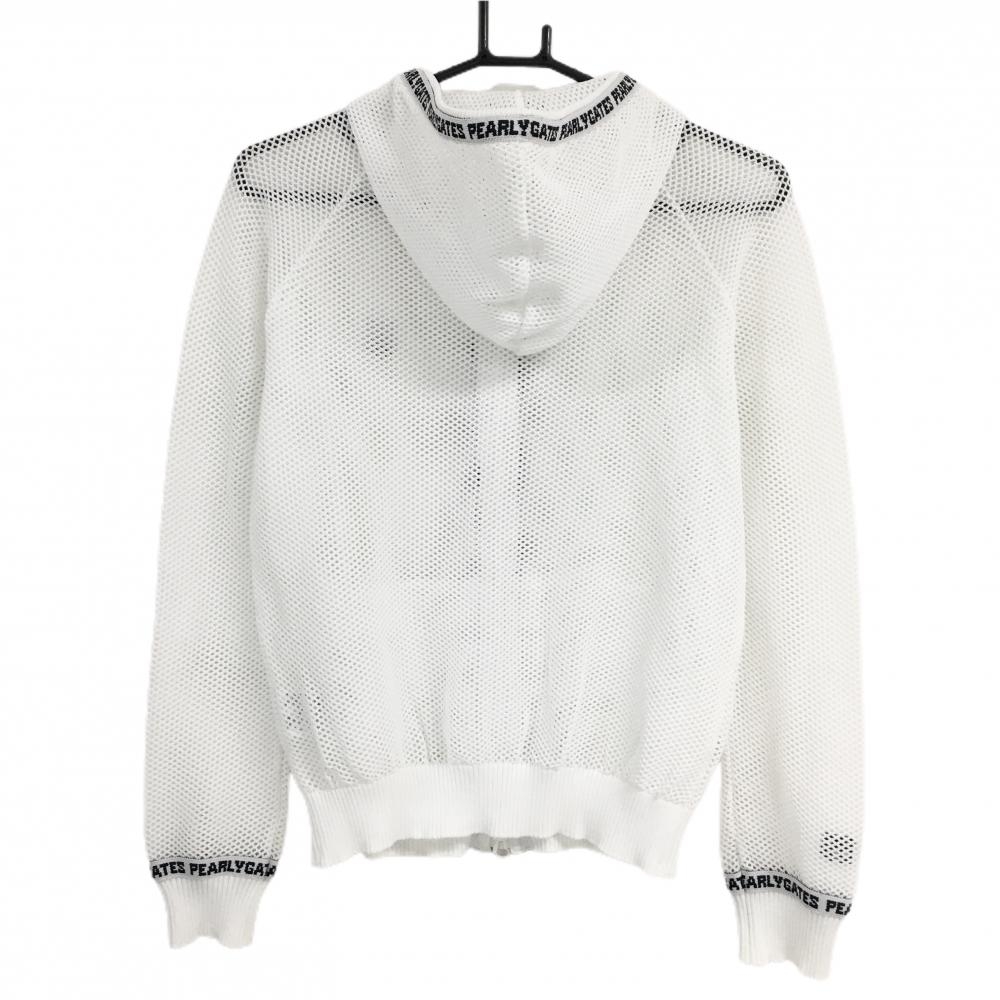 【超美品】パーリーゲイツ メッシュパーカー 白×ダークネイビー ニット 透かし編み ロゴ レディース 1(M) ゴルフウェア PEARLY GATES