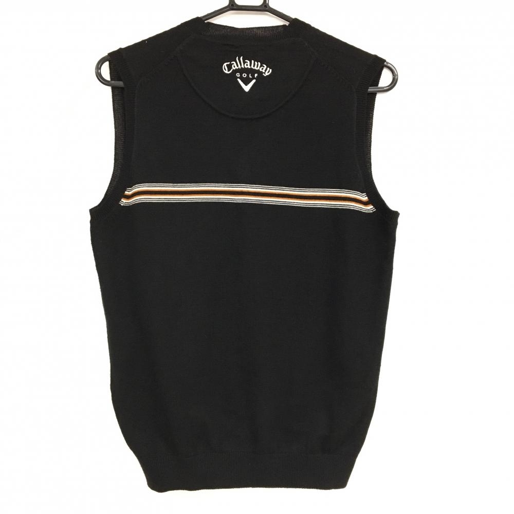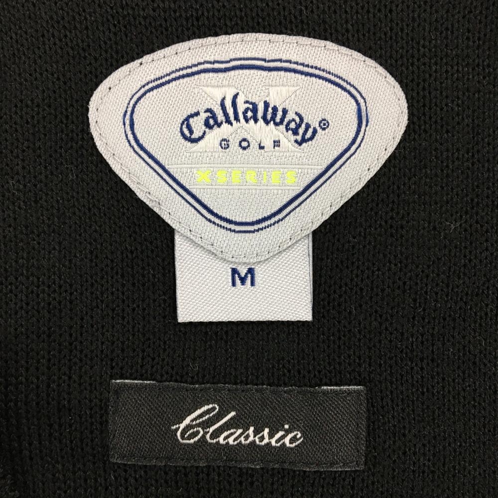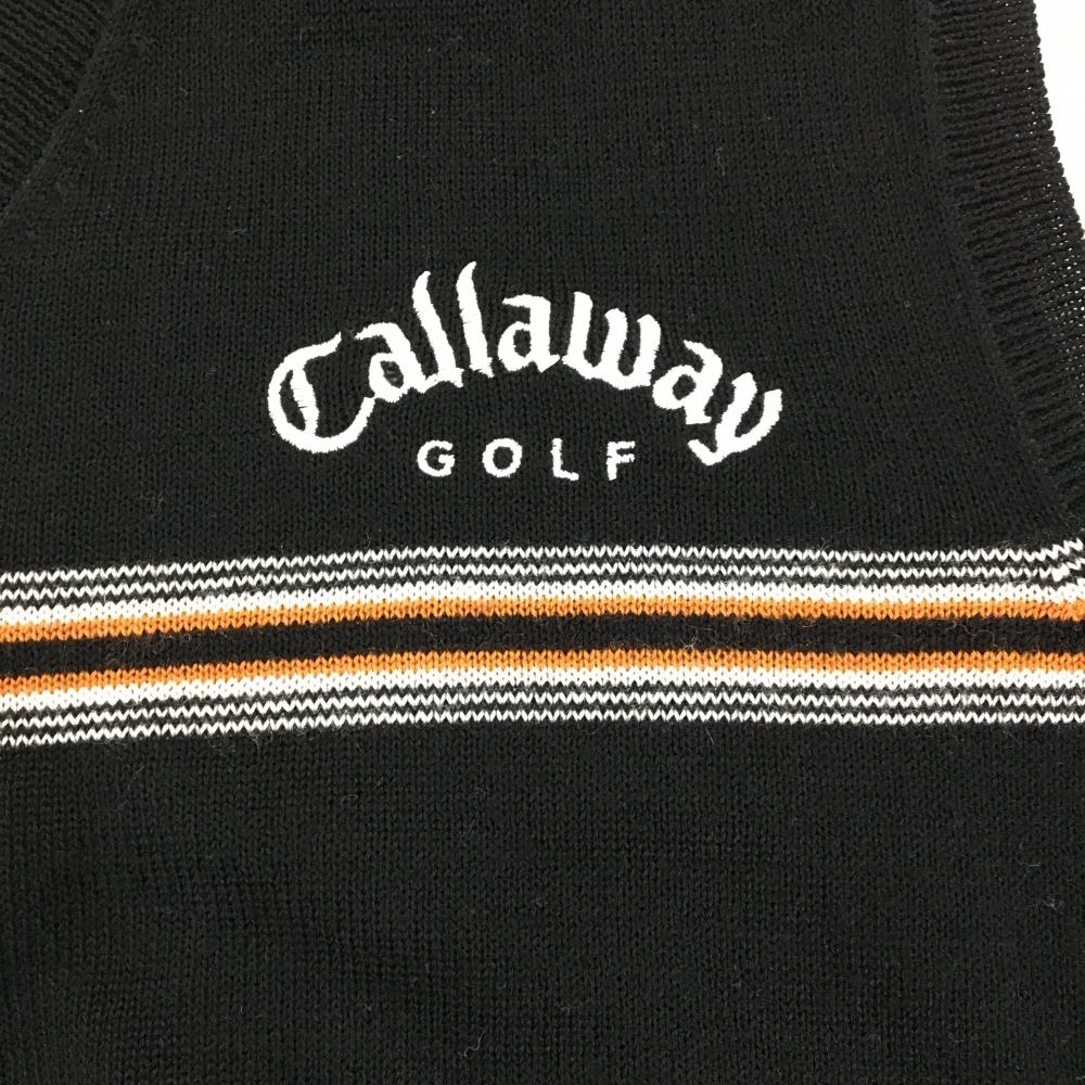 【美品】キャロウェイ ニットベスト 黒×白 胸ライン ウール混 Vネック メンズ M ゴルフウェア Callaway